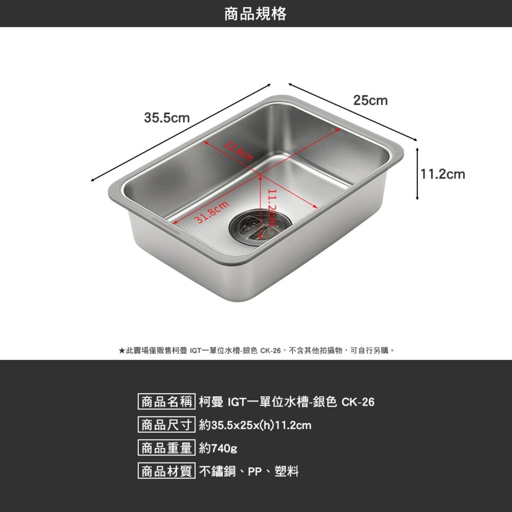 柯曼 IGT 一單位水槽 洗手槽 水槽 campingmoon 露營BKCK-26鍍鈦|CK-26銀色Camping & HikingCAMP WORLD 逐露 天下 露營 登山 生活 商城旗艦店