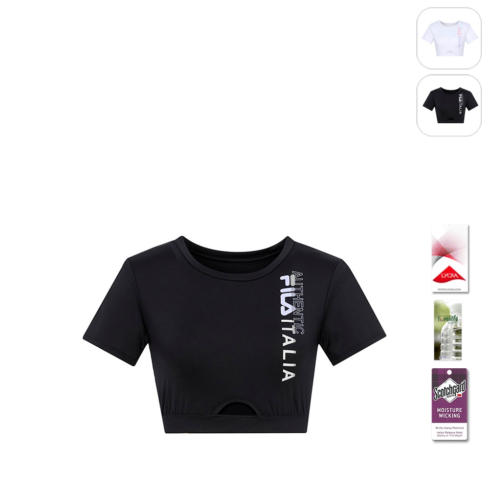 【FILA】女性 吸濕排汗 萊卡 短袖圓領上衣-黑色 5TEX-5311-BKXL|S|M|LT-shirtsFILA官方直營店