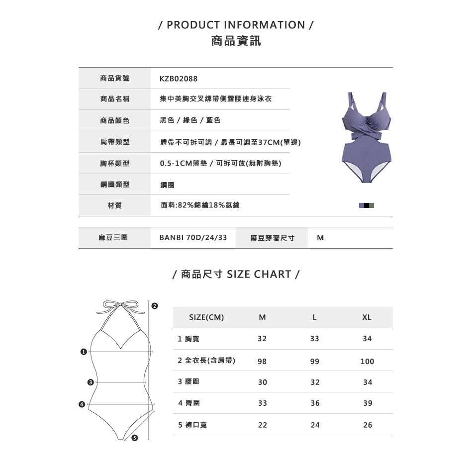 【DEPIC】集中美胸交叉綁帶側露腰連身泳衣(藍色)|dp select藍色M|藍色L|藍色XLSwimming AttireDEPIC