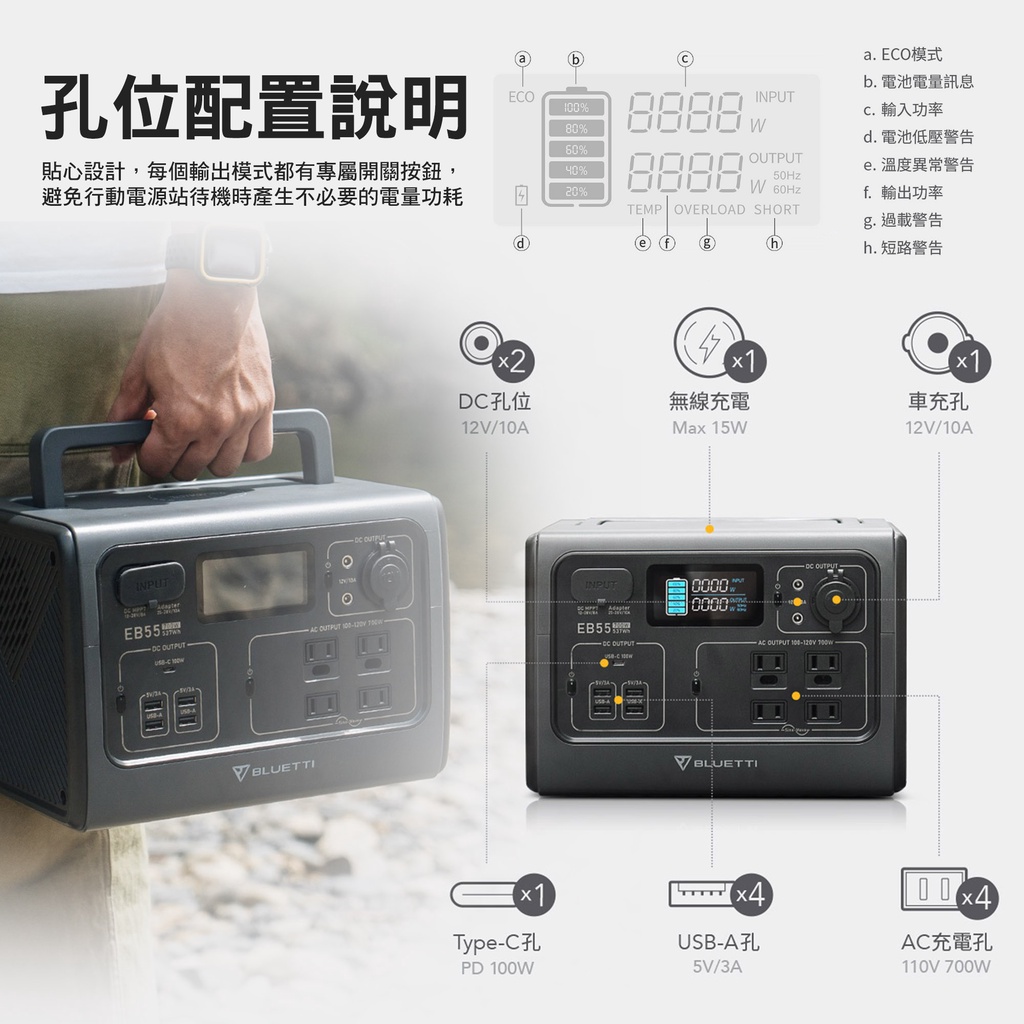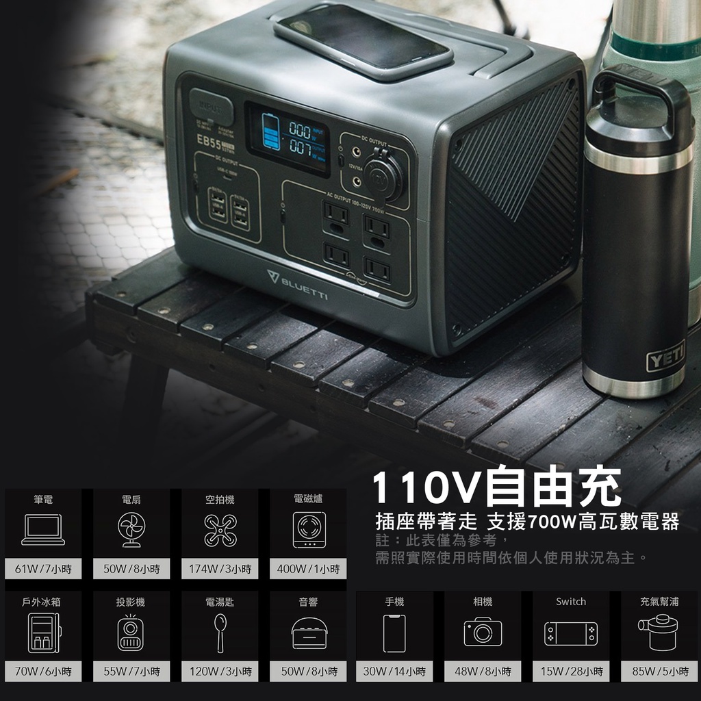 BLUETTI EB55 野獸級戶外充電站 168,000mAh 發電機 700W 露營 R39060 行動電源站 露營EB55 野獸級行動電源站-8月底到貨|單機+收納袋+100W太陽能板-8月底|主機+收納袋【收納包組】-8月底到貨Camping & HikingCAMP WORLD 逐露 天下 露營 登山 生活 商城旗艦店