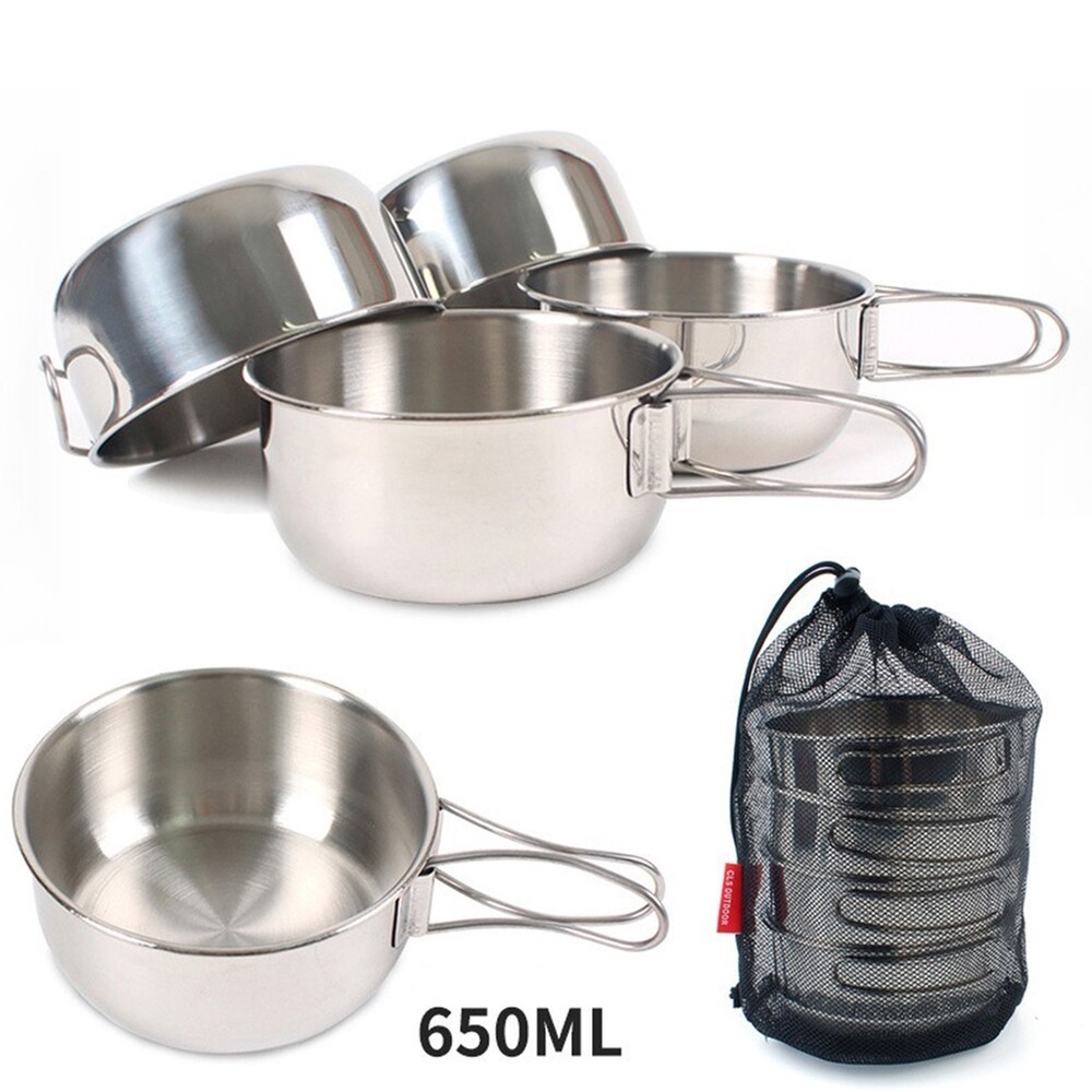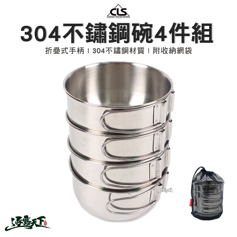 CLS 304不鏽鋼碗4件組 含收納網袋 餐具 露營逐露天下