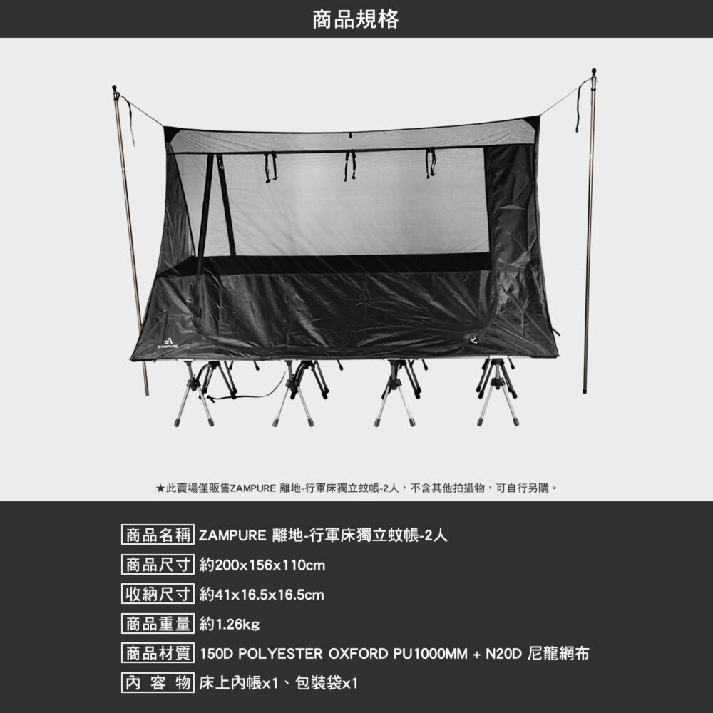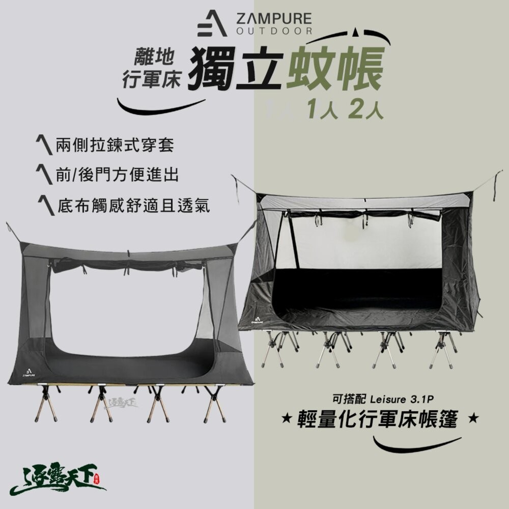 ZAMPURE 離地 行軍床獨立蚊帳 1人 2人 單人帳篷 雙人帳篷 行軍床 行軍床帳篷 離地帳篷 露營 逐露天下離地-行軍床獨立蚊帳 (1人)|離地-行軍床獨立蚊帳 (2人)Camping & HikingCAMP WORLD 逐露 天下 露營 登山 生活 商城旗艦店