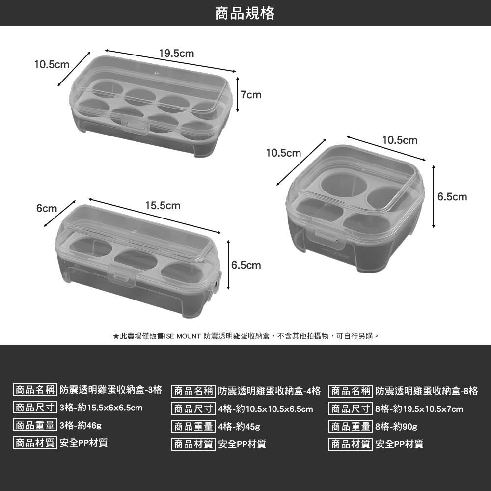 ISE MOUNT 防震透明雞蛋收納盒 雞蛋盒 分裝盒 透明盒 露營三格|四格|八格Camping & HikingCAMP WORLD 逐露 天下 露營 登山 生活 商城旗艦店