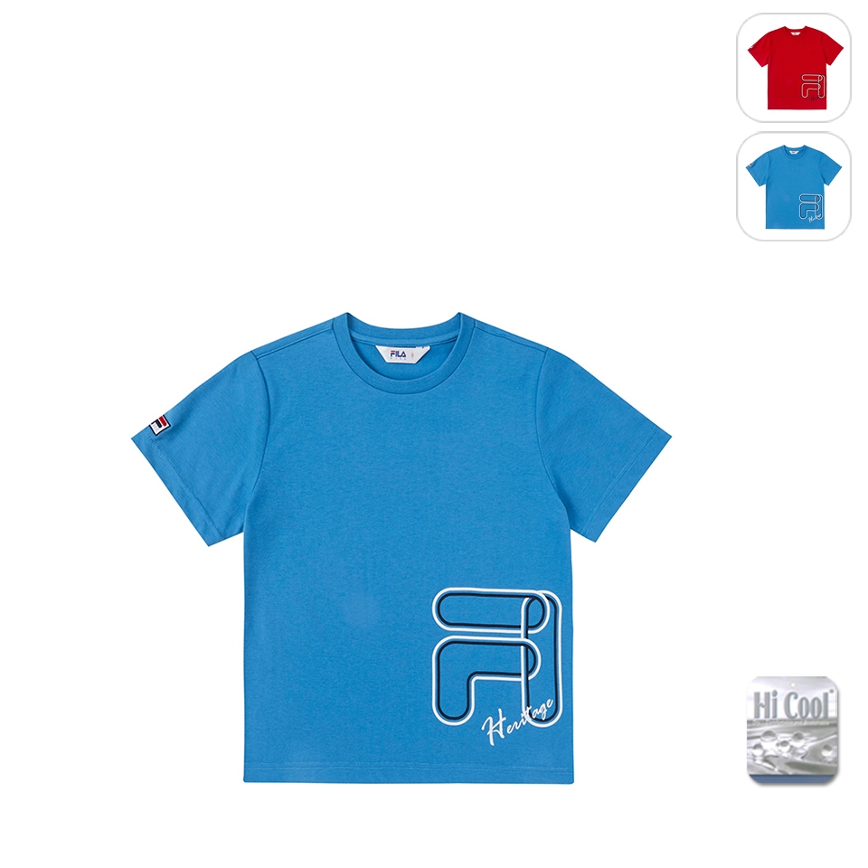 【FILA】KIDS 孩童款 吸濕排汗 運動短袖上衣-藍色 1TEX-4416-BU165A|135|145|155|160|165Kid’s Sports ApparelFILA官方直營店