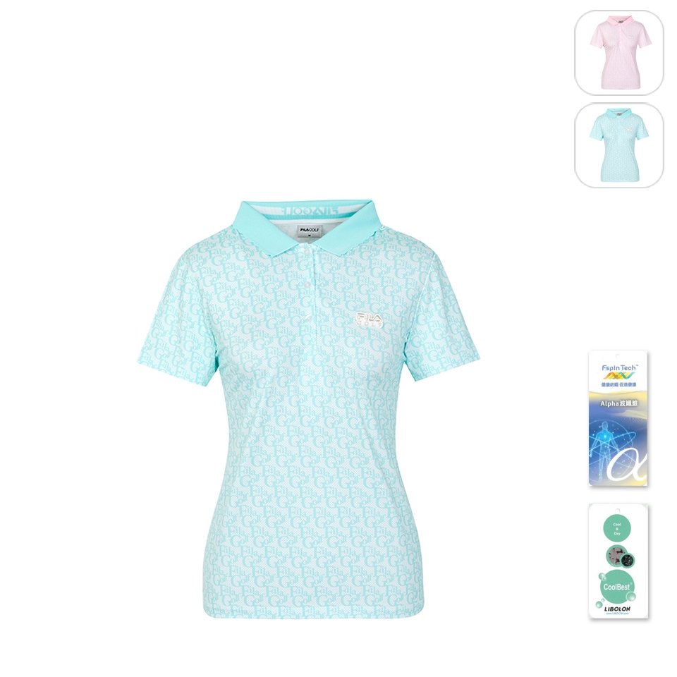 【FILA】女性 GOLF 高爾夫 短袖 滿版LOGO POLO衫-粉綠 5POY-2012-LN2XL|S|M|L|XLT-shirtsFILA官方直營店