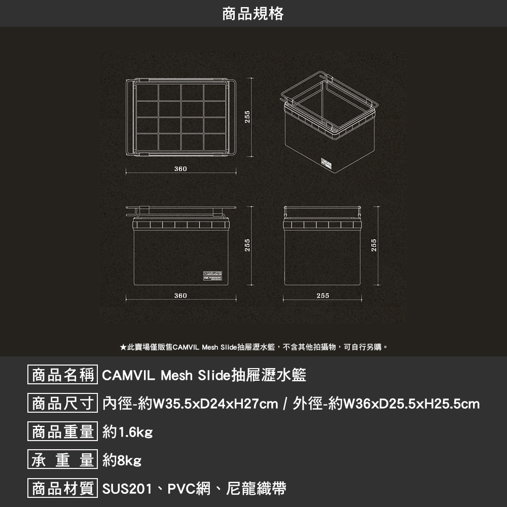CAMVIL Mesh Slide 抽屜瀝水籃 一單位 IGT 網袋 露營 逐露天下Mesh Slide抽屜瀝水籃Camping & HikingCAMP WORLD 逐露 天下 露營 登山 生活 商城旗艦店