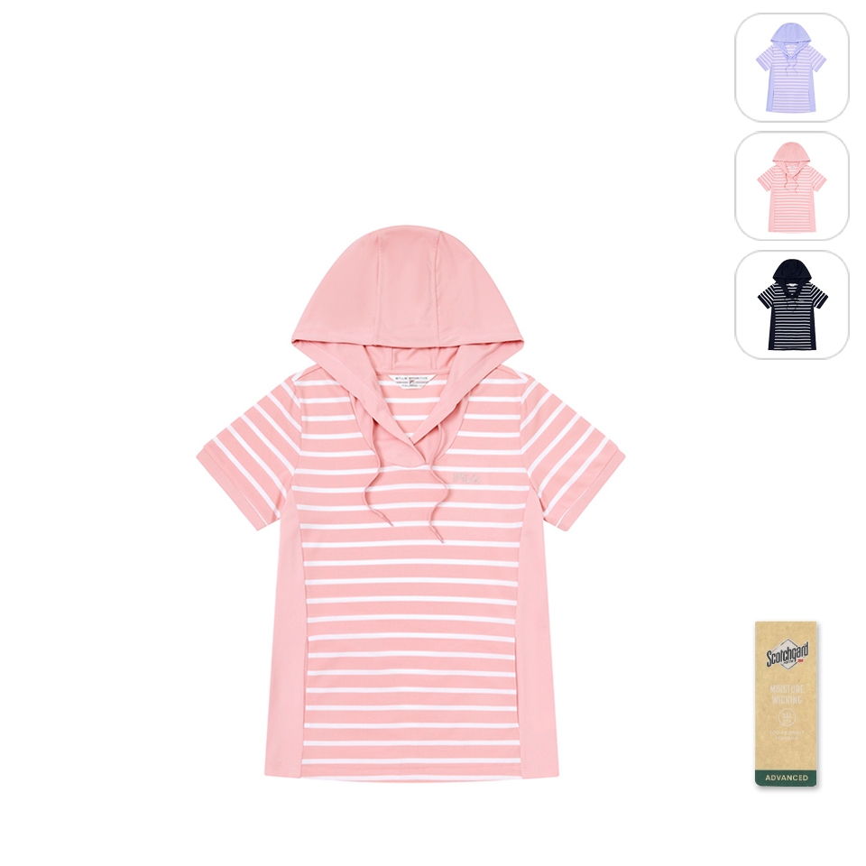 【FILA】女性 吸濕排汗 短袖條紋連帽T恤-粉紅 5TEY-1721-PKS|M|L|XL|2XLT-shirtsFILA官方直營店