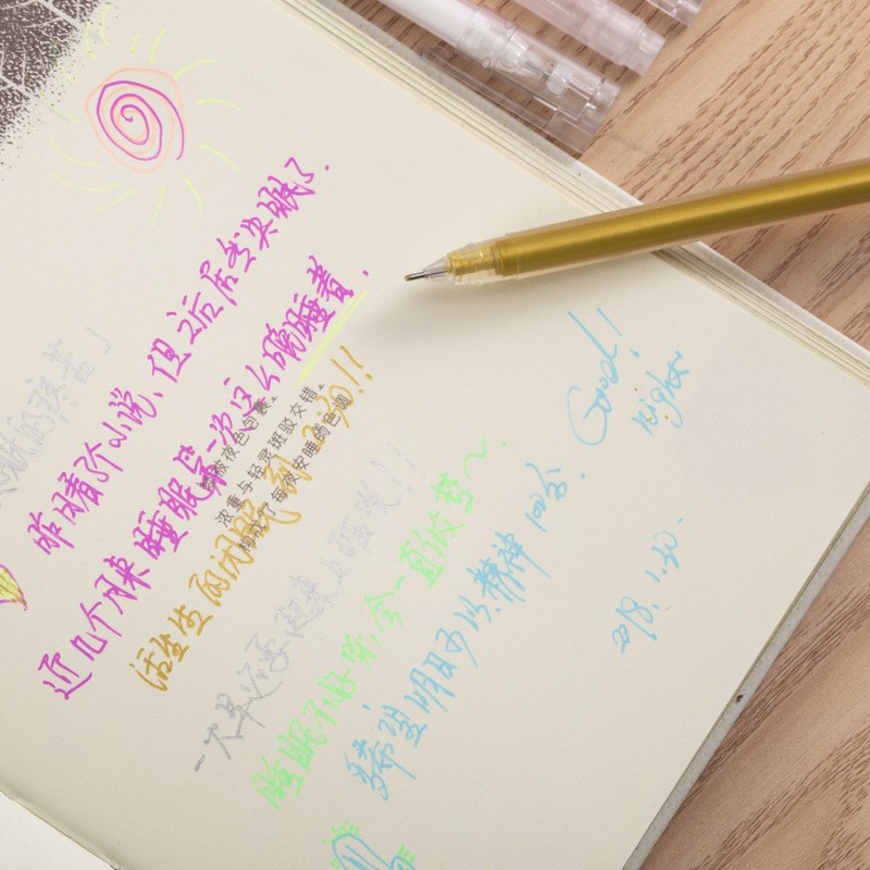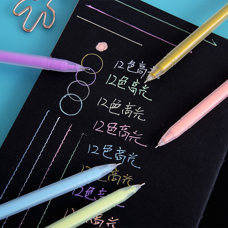 高光粉彩中性筆 手賬專用 劃重點閃光筆 高光筆 做筆記粉彩筆 記號筆 文具 12色筆【B723】綠|銀|粉|紫|金|黃|白HighlightersFS生活品專賣