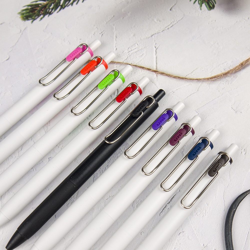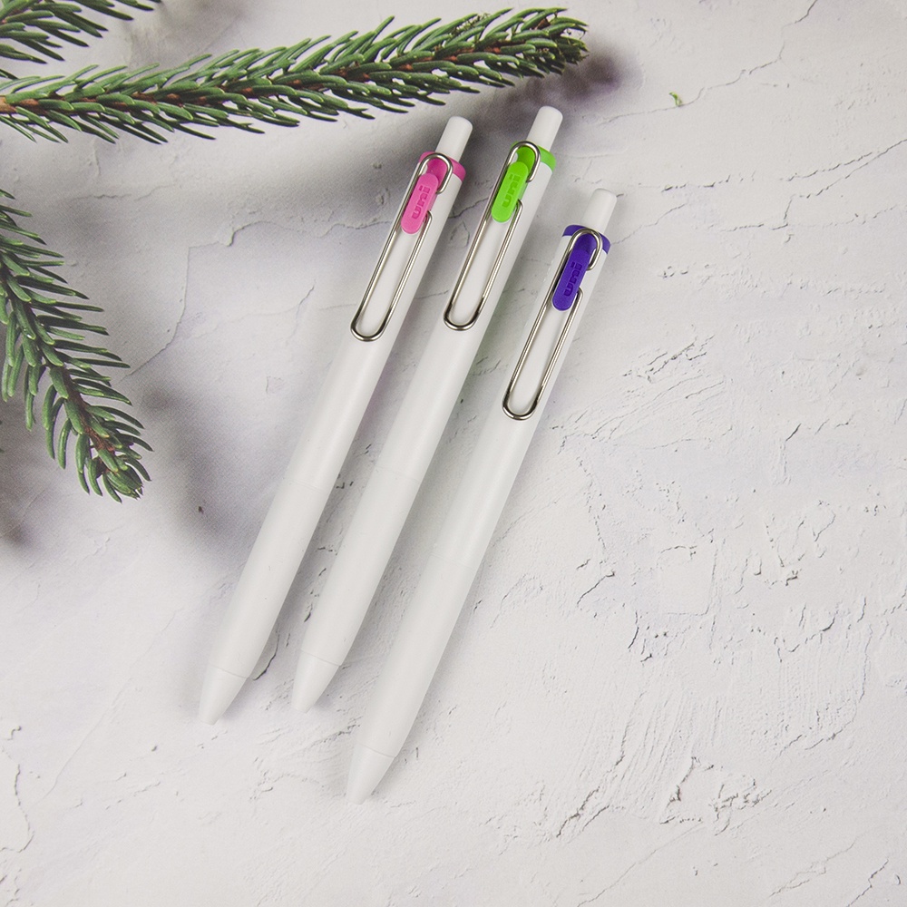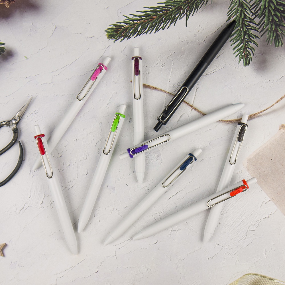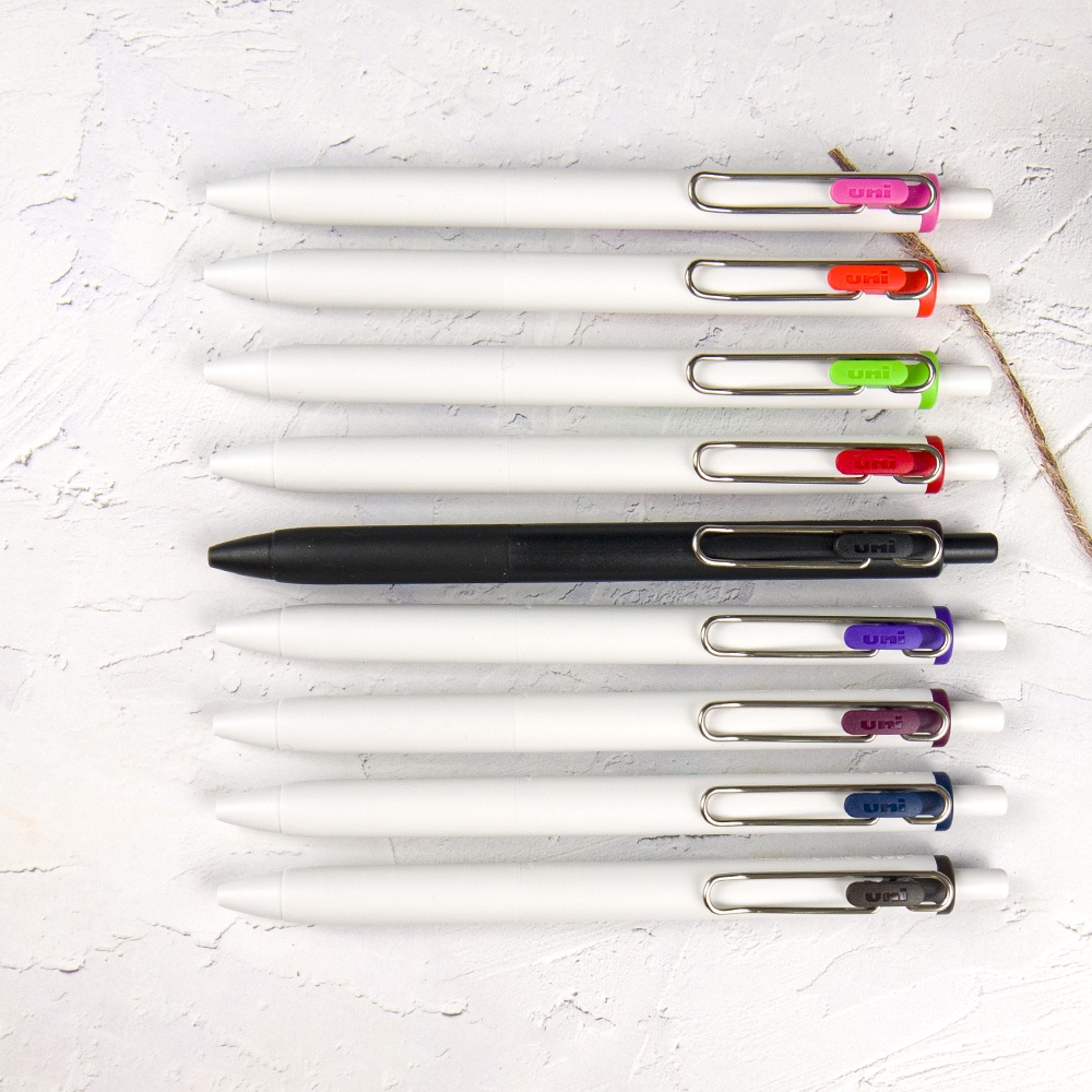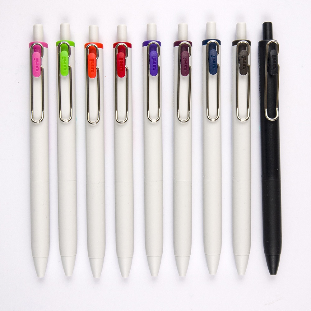 UNI 超細ONE自動鋼珠筆0.38 速乾 顏色濃豔 不易暈染黑-白軸|深藍|柑橘|嬰兒粉|紅|酒紅|深茶|槍黑-黑軸|紫|萊姆Pens & Inksconifer綠的事務