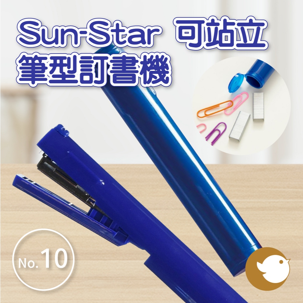 【CHL】Sun-Star 可站立筆型訂書機 便攜型 筆尾收納 可收納小物 10號訂書針 攜帶型 學生 辦公 簡約設計藍色Staplers & StaplesCHL-日本文具進口商 零售 批發