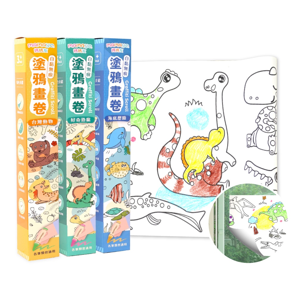 【mamayo】自黏無痕塗鴉畫卷 地毯紙捲 學習塗鴉 空白塗鴉紙捲自黏無痕塗鴉畫卷-好奇恐龍|自黏無痕塗鴉畫卷-海底歷險|自黏無痕塗鴉畫卷-台灣動物|地毯紙捲-加大款(30*45m)|地毯紙捲-桌上型(30*30m)Sketch BooksDoris.Ann朵麗絲.安