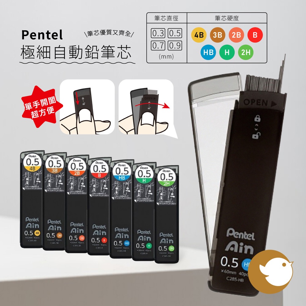 【CHL】Pentel Ain 極細自動鉛筆芯 抗彎曲 抗污漬 0.2 0.3 0.5 0.7 0.9 鉛芯0.2mm-HB(舊包裝)|0.3mm-B(舊包裝)|0.3mm-HB(舊包裝)|0.7mm-HB(舊包裝)|0.7mm-2B|0.9mm-HB(舊包裝)|0.9mm-2B|0.3mm-2B|0.3mm-B|0.3mm-HB|0.3mm-H|0.5mm-4B|0.5mm-3B|0.5mm-2B|0.5mm-B|0.5mm-HB|0.5mm-H|0.5mm-2H|0.7mm-B|0.7mm-HB|0.9mm-B|0.9mm-HB|0.5mm-4B(舊包裝)|0.5mm-2B(舊包裝)PencilsCHL-日本文具進口商 零售 批發
