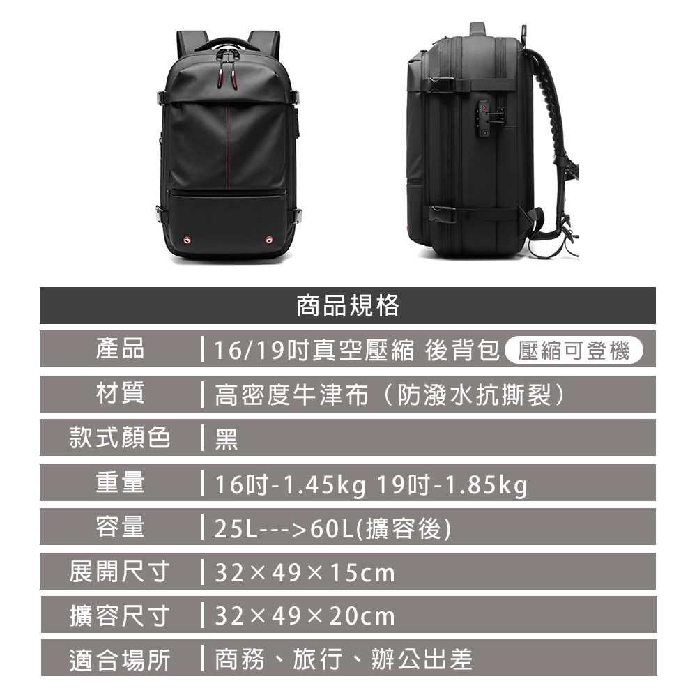 【DAYOU】真空壓縮旅行背包 19吋雙肩包 抽真空 壓縮登機包 多功能防水防盜 乾濕分離 戶外後背包 D050208619吋後背包-TSA海關鎖|16吋後背包-一般鎖扣Duffel & Weekender BagsDUSPORT 運動戶外旗艦館|新北汐止、桃園中壢、台中大里、高雄前鎮旗艦門市