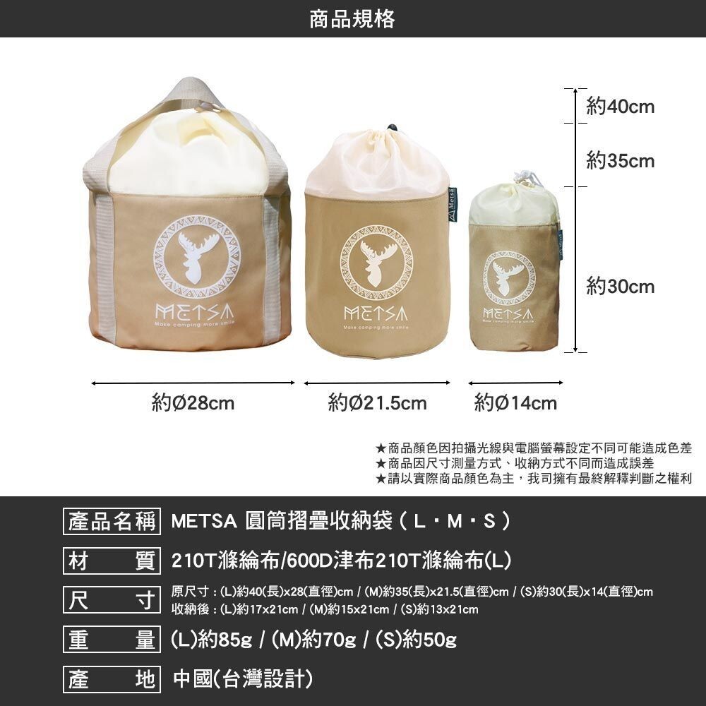 METSA 圓筒摺疊收納袋 SND-103SD 束口袋 收納袋 收納包 戶外 露營逐露天下圓筒摺疊收納袋- M Φ21|圓筒摺疊收納袋- L Φ28|圓筒摺疊收納袋- S Φ14Drawstring BagsCAMP WORLD 逐露 天下 露營 登山 生活 商城旗艦店