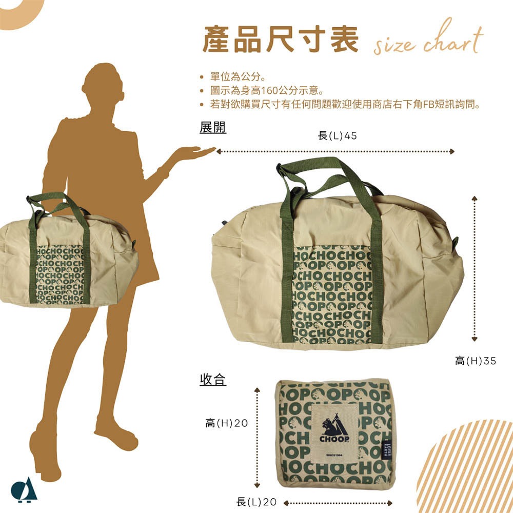 CHOOP小松鼠-防潑水收納旅行袋 旅行袋 運動包 收納包 防水 手提 兩用包 AAstore黑|卡其Duffel & Weekender BagsChooShop潮流選品店