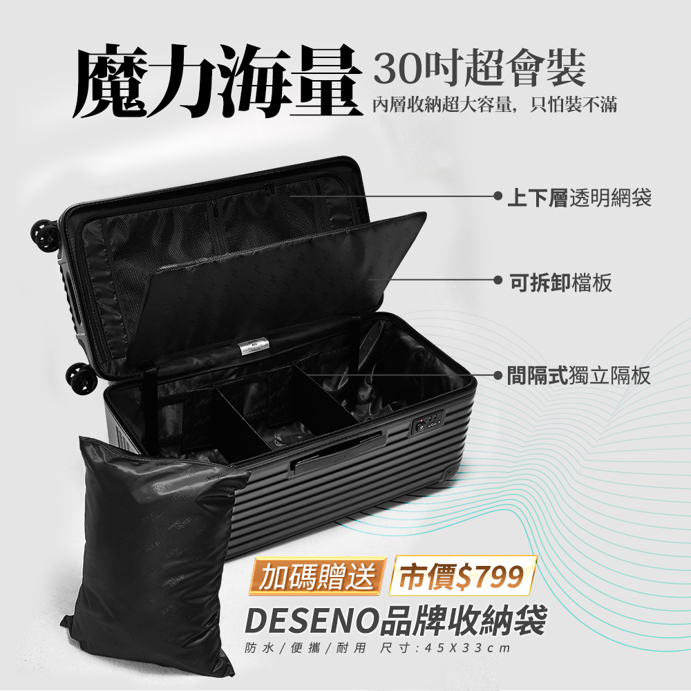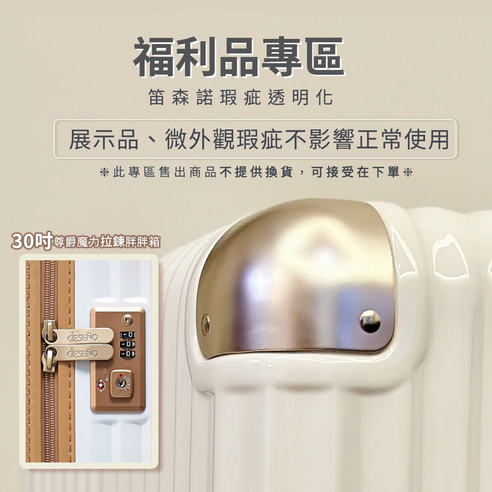 【福利品】Deseno 笛森諾 30吋 尊爵魔力特仕版 運動款胖胖箱 防爆新型拉鍊行李箱福利品-白|福利品-深海藍|福利品-奶茶|福利品-酪梨綠|福利品-夜空藍|福利品-焦糖拿鐵|福利品-金屬綠|福利品-蜜桃粉|福利品-曜石黑|福利品-松洋綠|福利品-櫻花粉|福利品-南瓜黃Deseno 笛森諾亞洲旅遊精品旗艦店