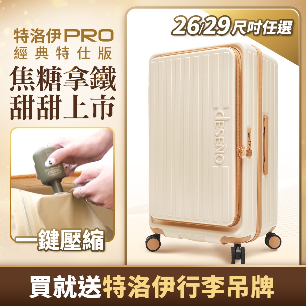 【新色上市贈好禮】Deseno笛森諾 特洛伊PRO-征途者 26吋/29.5吋前開式煞車行李箱焦糖拿鐵-現貨,26吋-僅行李箱沒有壓縮機|焦糖拿鐵-現貨,29.5吋-僅行李箱沒有壓縮機|焦糖拿鐵-現貨,26吋-壓縮機組合|焦糖拿鐵-現貨,29.5吋-壓縮機組合Deseno 笛森諾亞洲旅遊精品旗艦店
