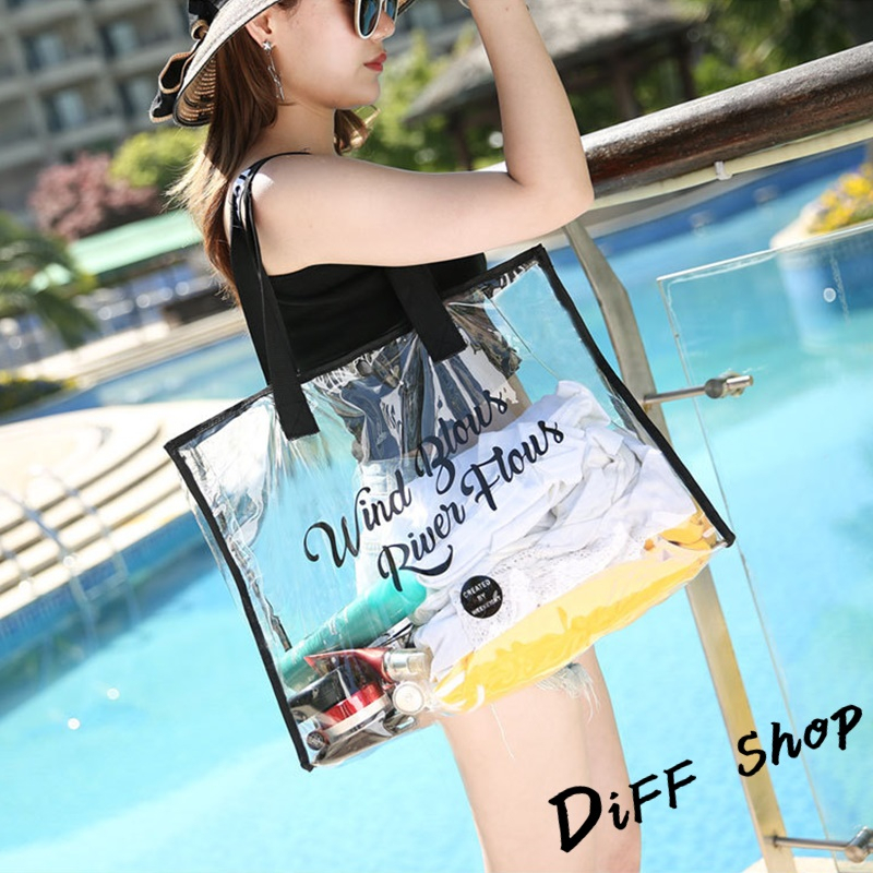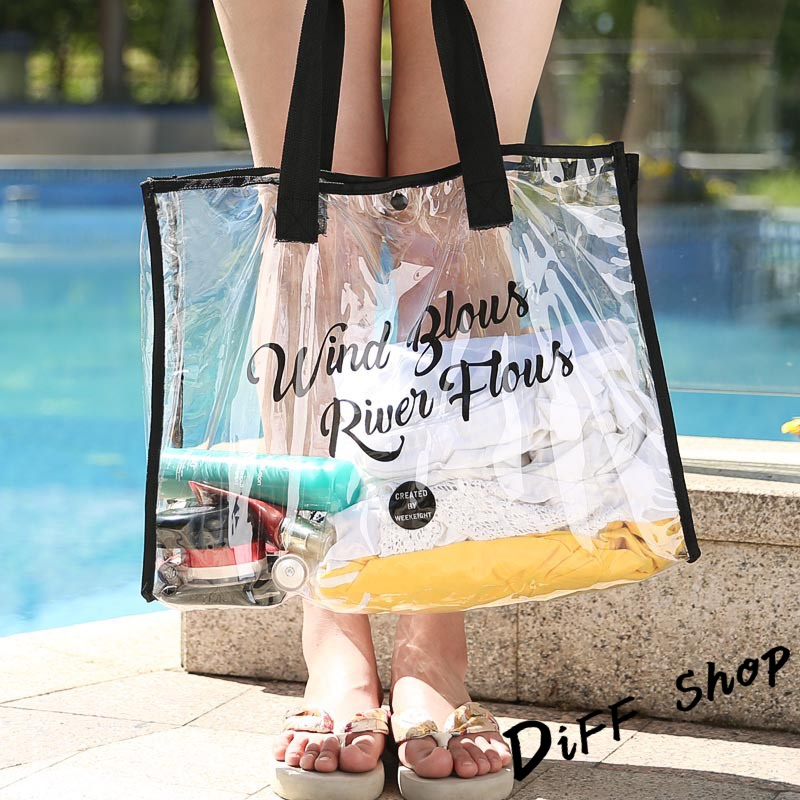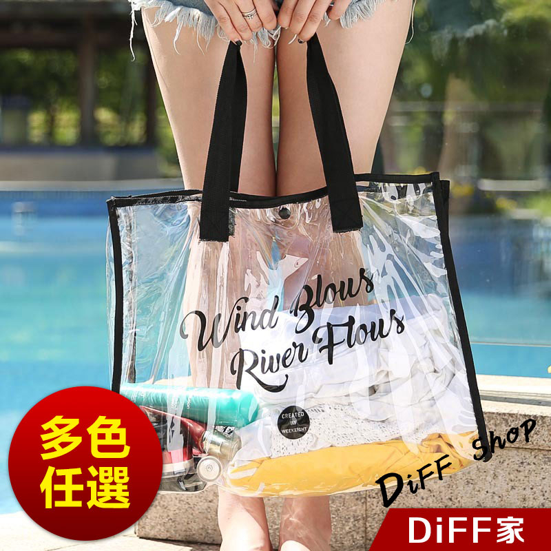 【DIFF】韓版游泳必備透明防水手提袋 游泳包 洗漱包 防水化妝包 手提收納包 塑膠手提袋 沙灘手提袋【N130】【N130】透明防水手提袋-黑色Travel OrganizersDiFF shop