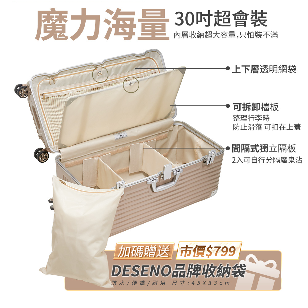 【贈專屬箱套】Deseno 笛森諾 尊爵魔力 超細邊鋁框胖胖箱 運動款胖胖箱 30吋行李箱-顏色任選鋁框-酪梨綠-現貨|新色-鋁框-松洋綠-現貨|特仕版-鋁框-香芋紫-現貨-無段式拉桿|特仕版-鋁框-烈焰紅-現貨-無段式拉桿Deseno 笛森諾亞洲旅遊精品旗艦店
