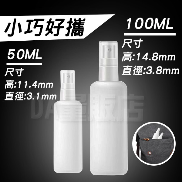 酒精分裝瓶 50ml/100ml HDPE 噴霧瓶 不透光 適用於 酒精 次氯酸水 噴瓶 噴壓瓶 按壓瓶 攜身攜帶50ml|100mlTravel Size Bottles & ContainersDA量販店