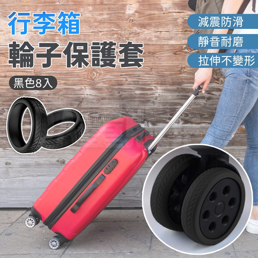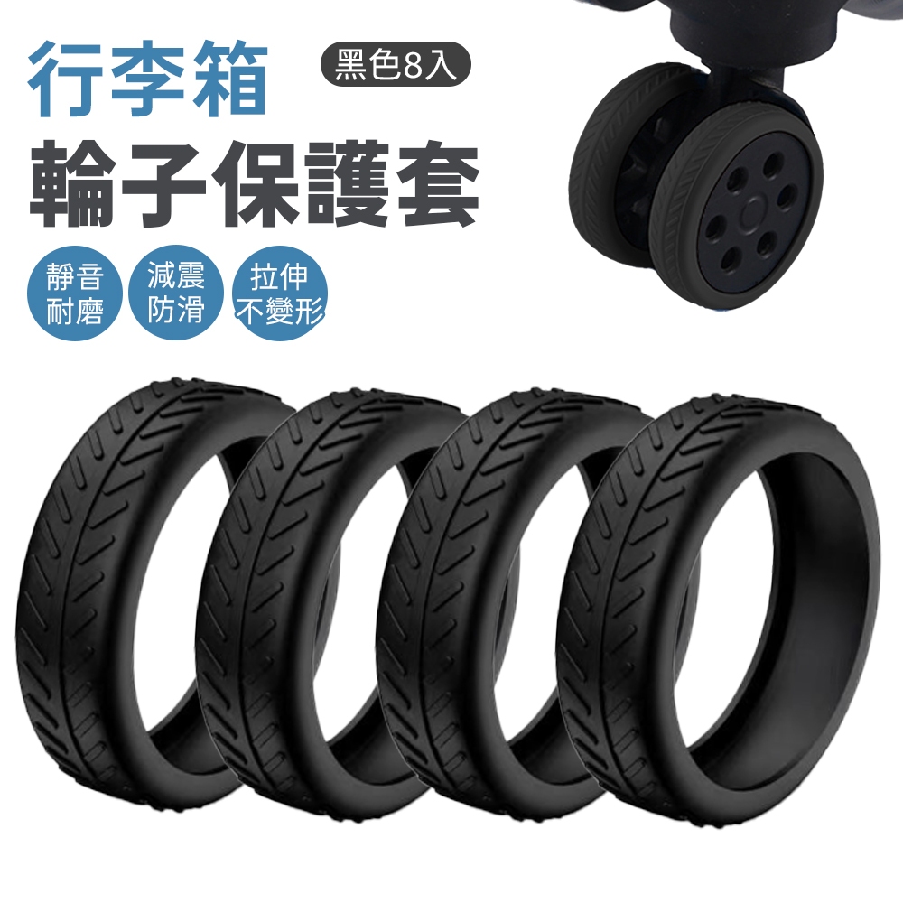 8入裝 行李箱輪套 行李箱 輪子保護套 行李箱輪子 保護套 矽膠保護套 行李箱輪 靜音保護套 行李箱配件 行李箱 輪子黑色 8入OthersDA量販店