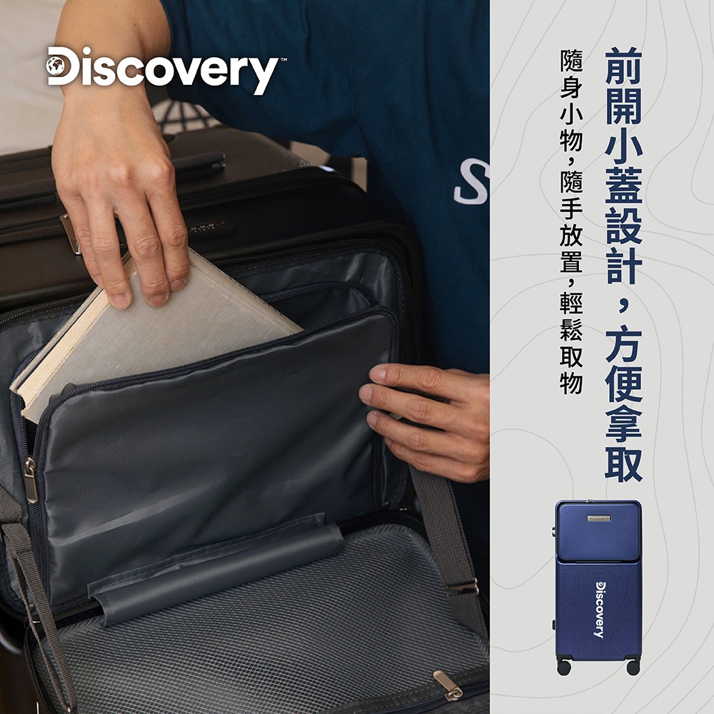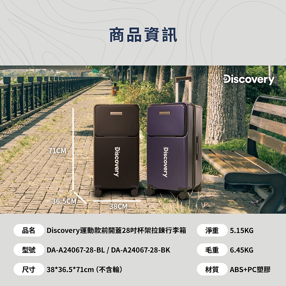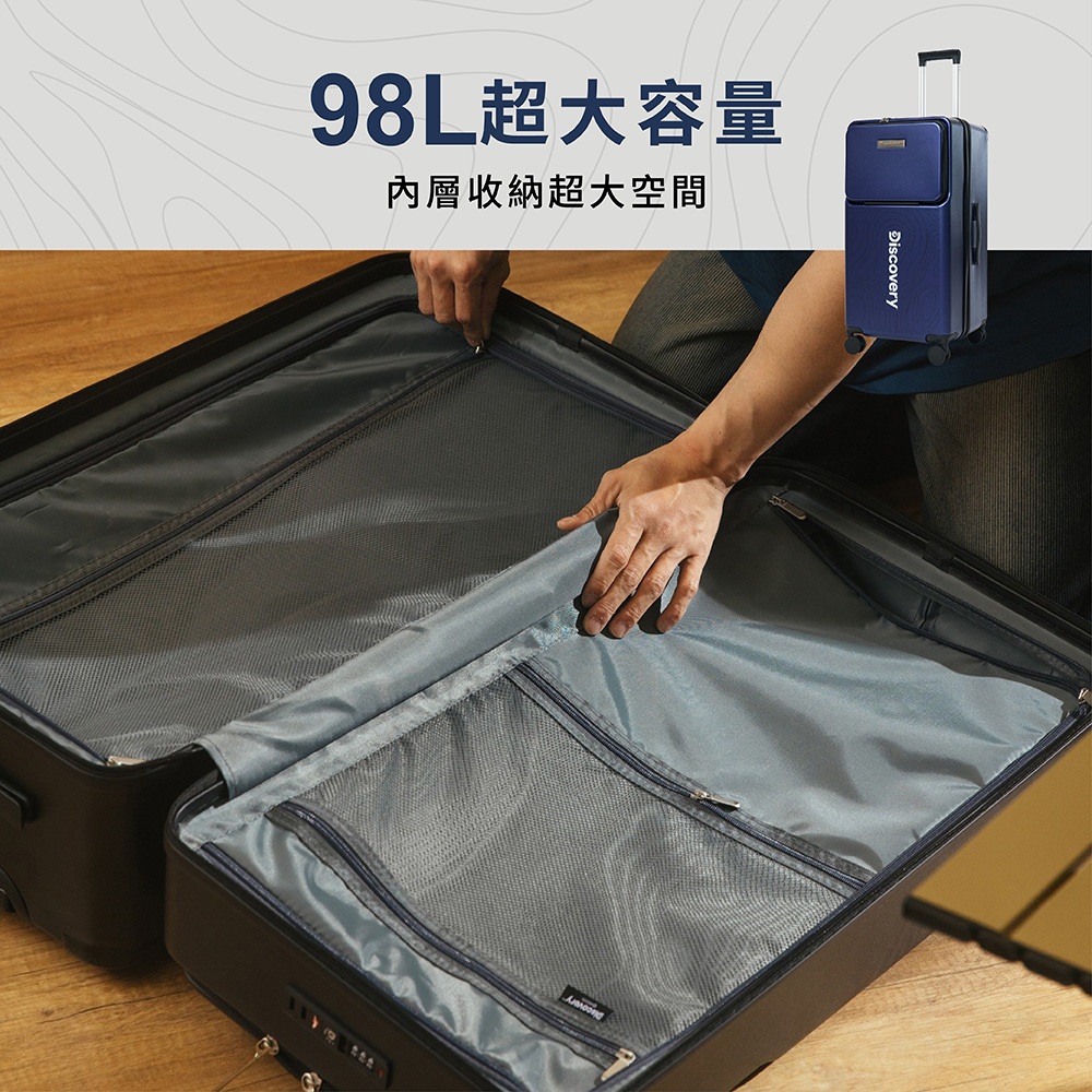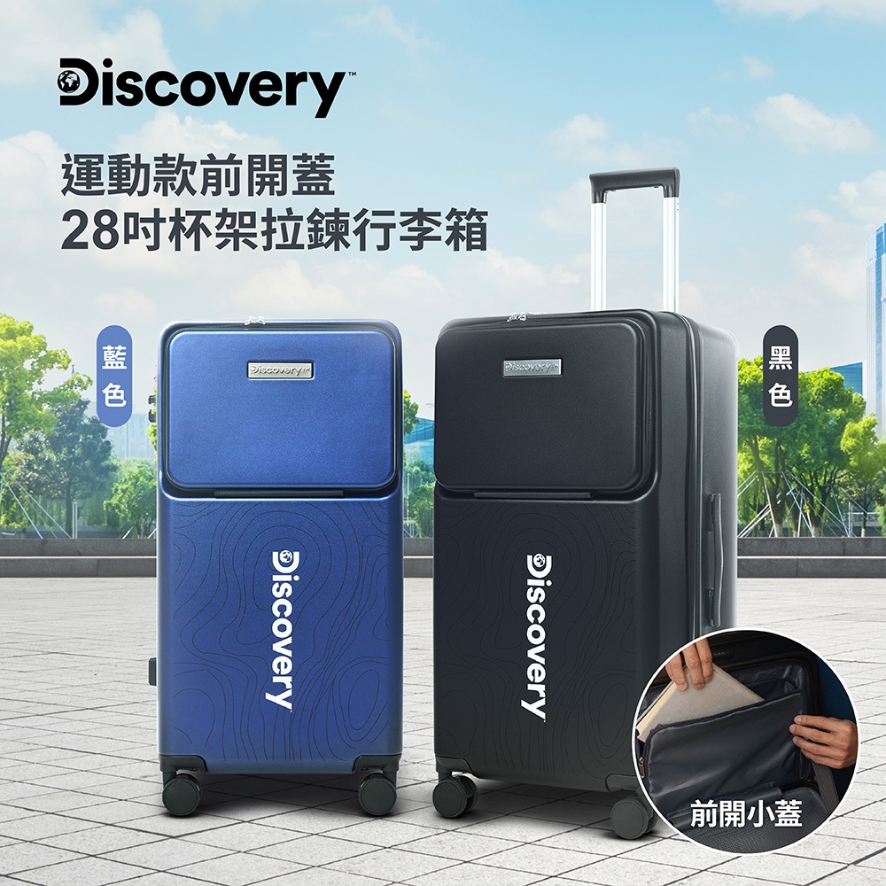 【Discovery】運動款前開蓋28吋杯架拉鏈行李箱-黑/深藍 旅行箱 大容量黑|深藍Discovery Adventures 探索旗艦店