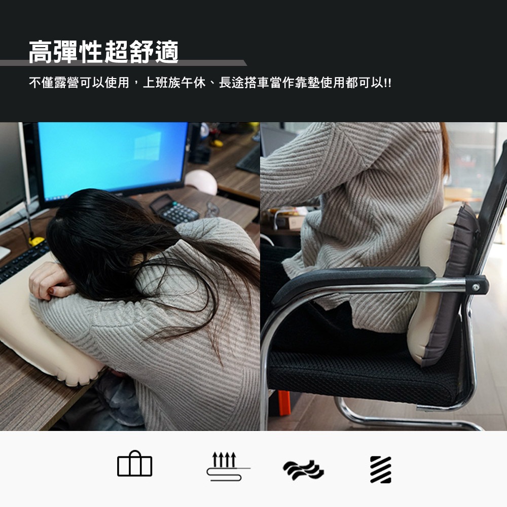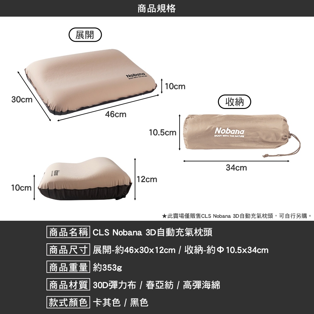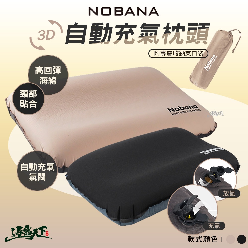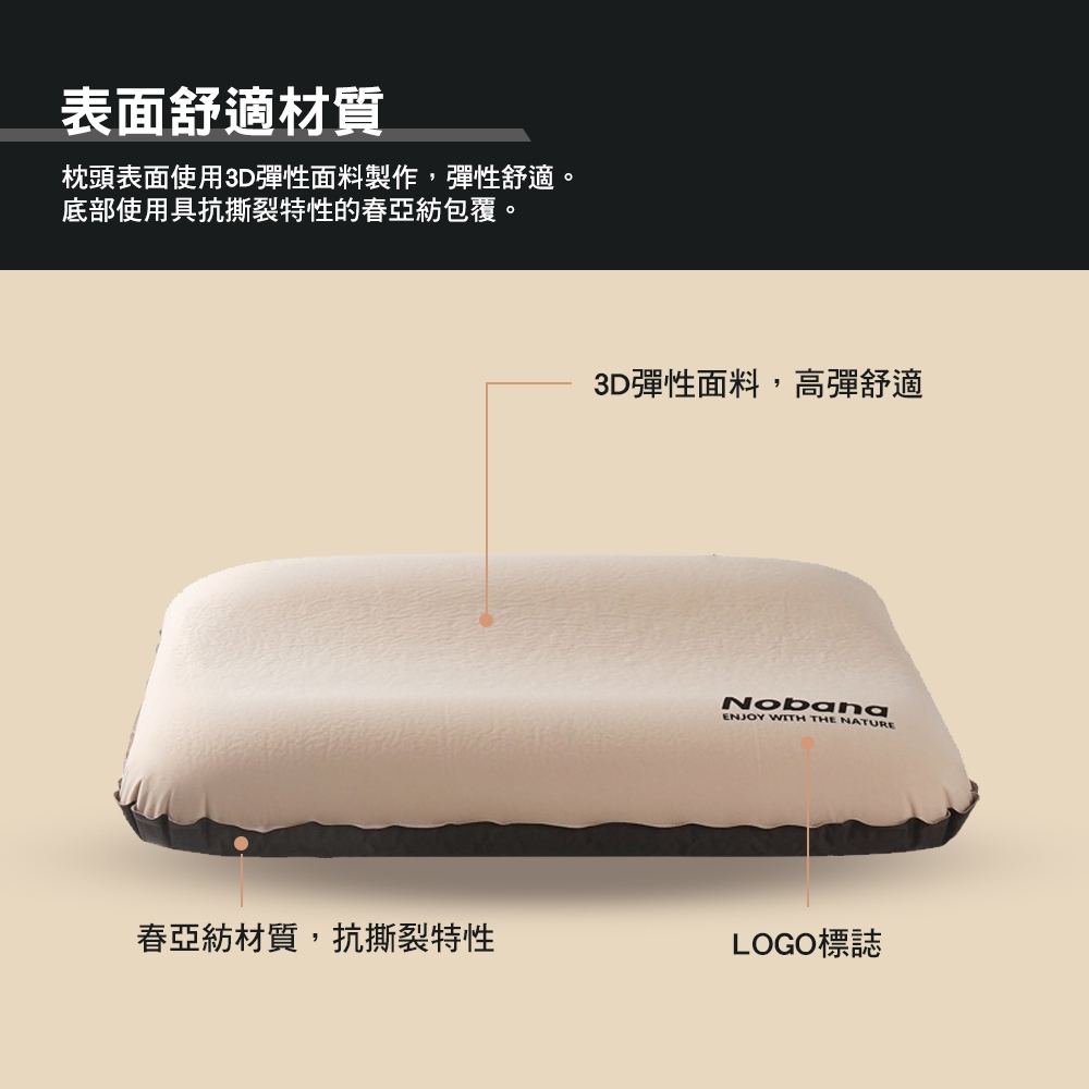 NOBANA 3D 自動充氣枕 紓壓 人體工學 自動充氣 高彈性 枕頭 露營枕 露營卡其色|黑色Travel Pillows & Eye CoversCAMP WORLD 逐露 天下 露營 登山 生活 商城旗艦店