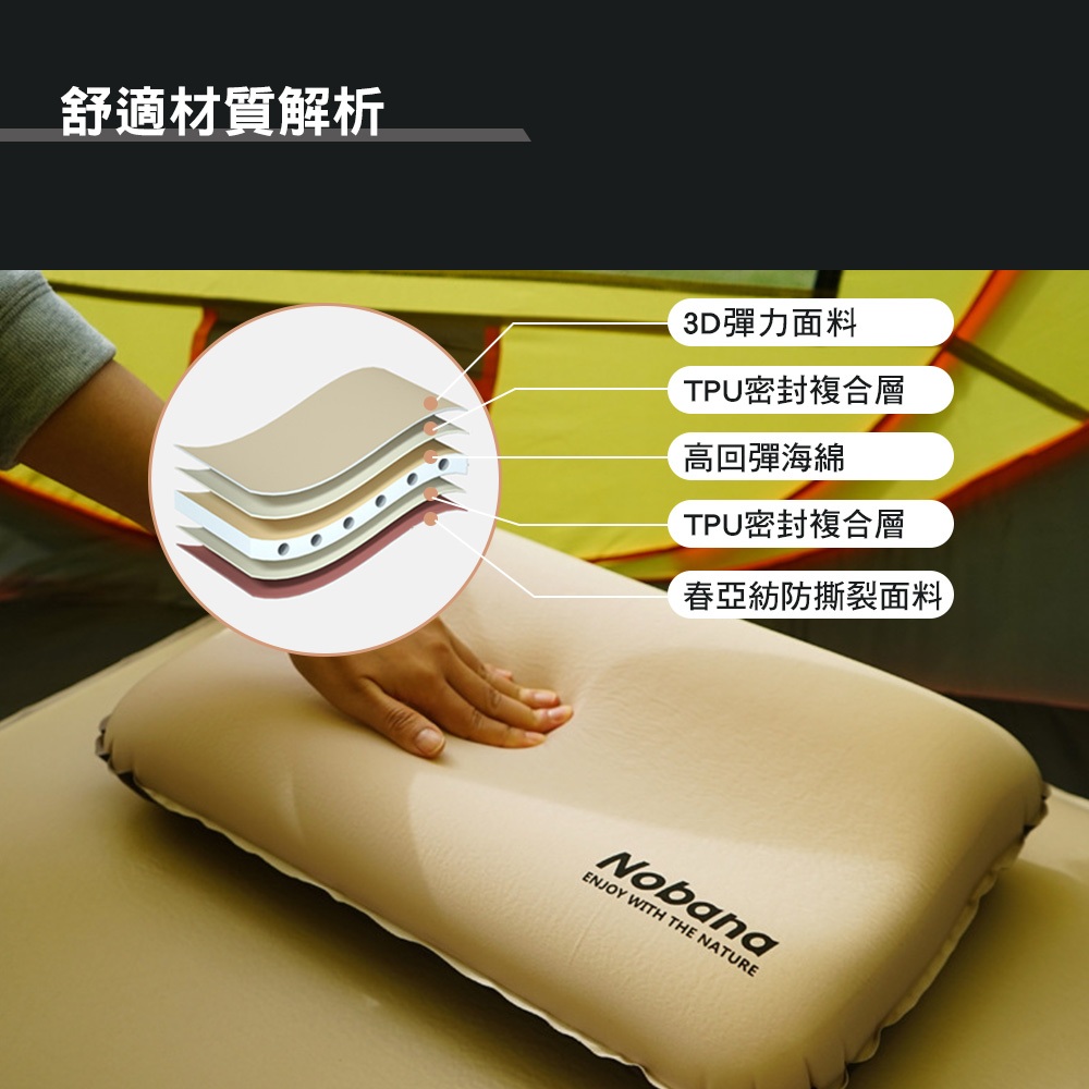 NOBANA 3D 自動充氣枕 紓壓 人體工學 自動充氣 高彈性 枕頭 露營枕 露營