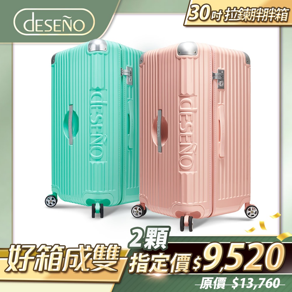 【好箱成雙嚴選組合】Deseno 笛森諾 尊爵魔力 防爆新型拉鍊行李箱 運動款胖胖箱 30吋-組合品組合A:金屬紅+白|組合B:松洋綠+櫻花粉|組合C:酪梨綠+南瓜黃|組合D:金屬綠+黑(金包角)Deseno 笛森諾亞洲旅遊精品旗艦店