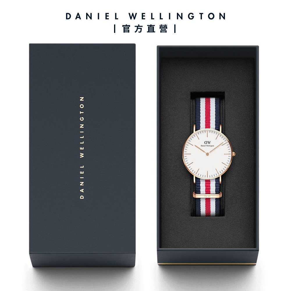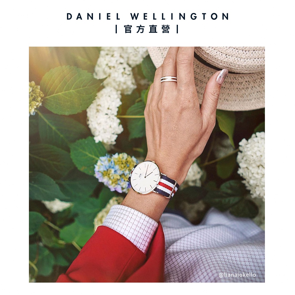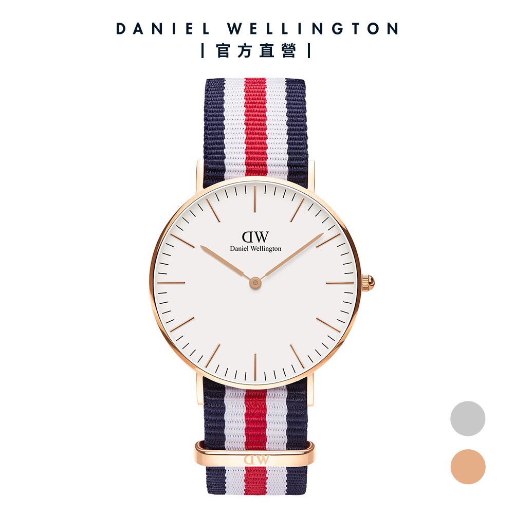 【Daniel Wellington】DW 手錶 Classic Canterbury 36mm 細紋藍白紅織紋錶36mm-玫瑰金框|36mm-銀框Daniel Wellington 官方直營