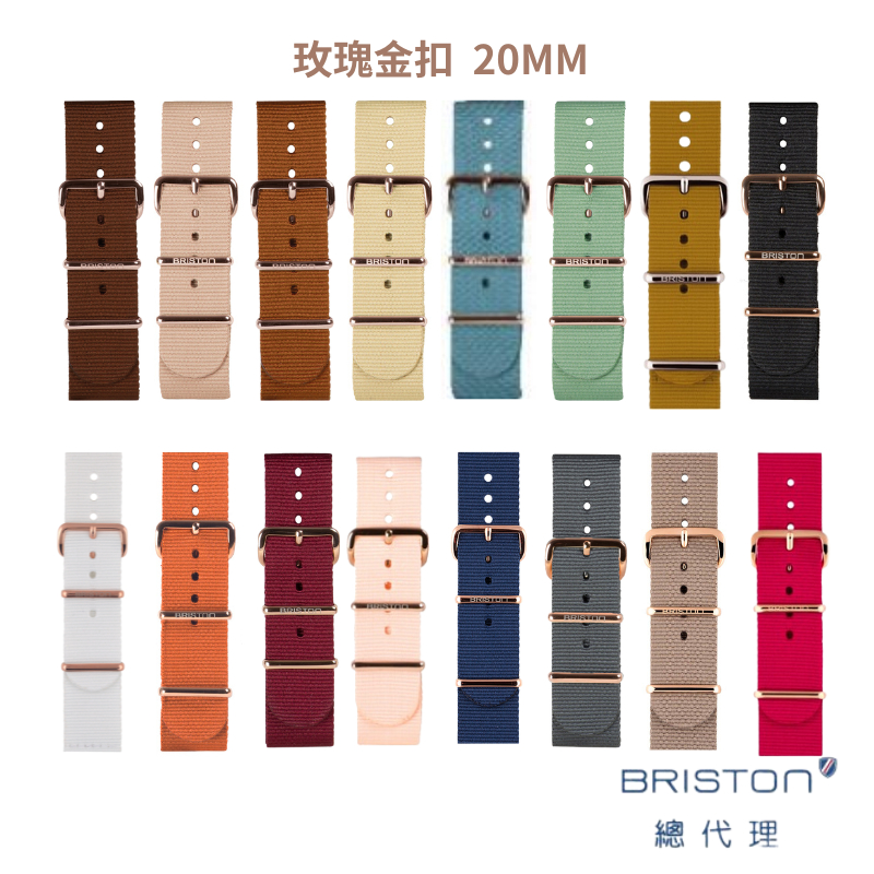 BRISTON 帆布錶帶 玫瑰金扣 20MM NATO 尼龍錶帶 方糖錶 熊貓錶 適用香草色|裸色|焦糖色|可可色|冰河藍|薄荷綠|芥末黃|黑色|白色|橘色|酒紅/吳謹言紅|粉紅|海軍藍|灰|奶茶色|莓紅StrapsBRISTON (布里斯頓) 台灣官方旗艦店