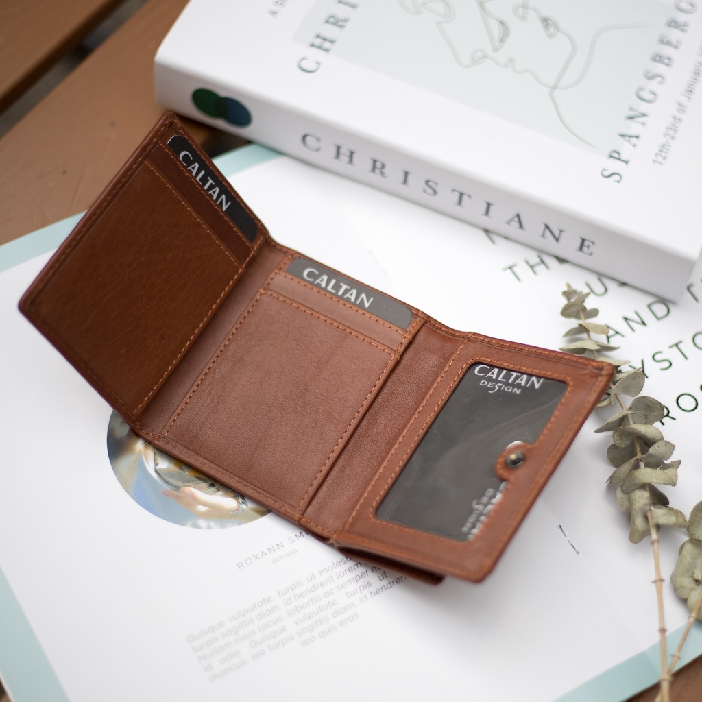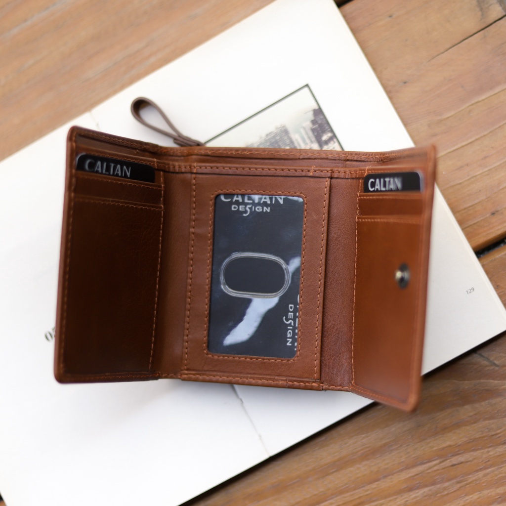 【CALTAN】真皮/中夾 | 小文藝扣式真皮短夾-075055_五色 零錢包 小皮夾百搭咖啡|森林綠色|霧面奶茶|時尚黑色|焦糖拿鐵Bifold & Trifold WalletsCALTAN DESIGN 頭層牛皮皮件館