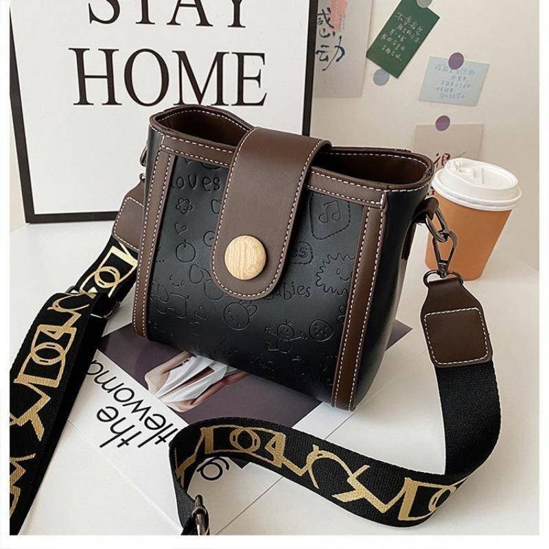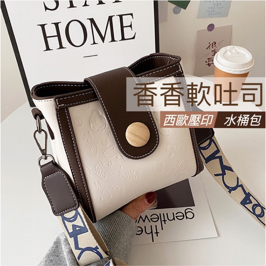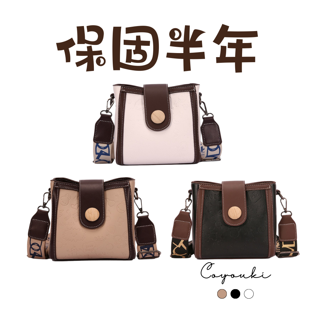 COYOUKI 包包女 側背包 草莓 時尚水桶包 百搭 印花 ins 寬帶 單肩 斜挎包 壓印時尚【全館包包享保固】壓印黑色+保固半年|壓印白色+保固半年COYOUKI日本設計師品牌