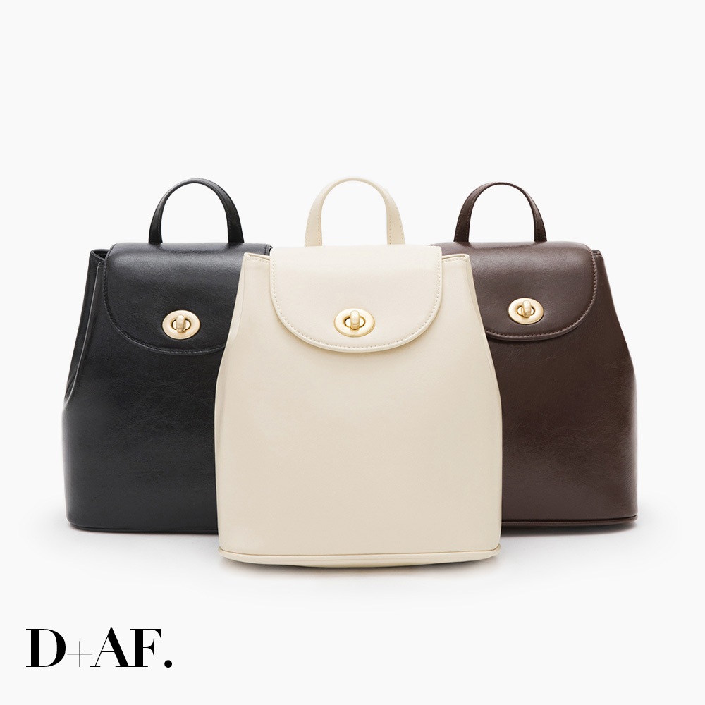 D+AF 包包 包 女包 [cocoa復古轉釦後背包] 3色米白|咖|黑D+AF|官方旗艦店