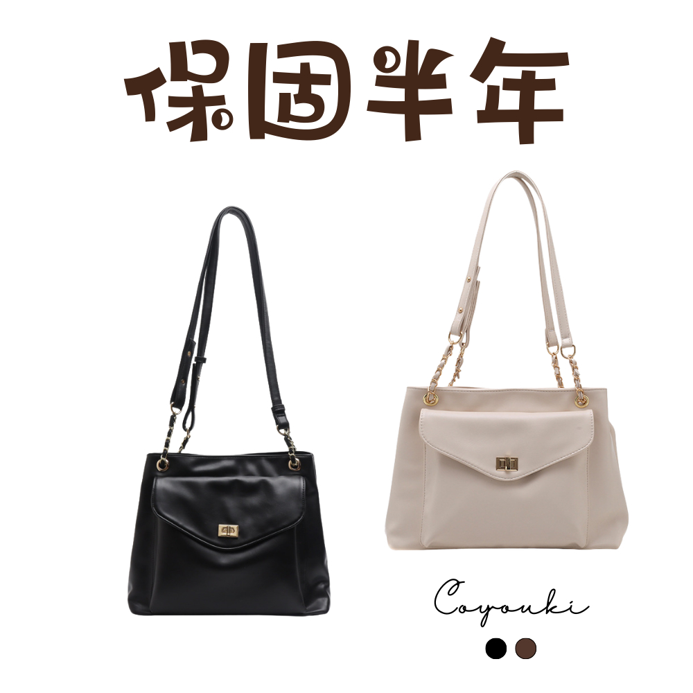 COYOUKI 金鍊托特包 托特包 通勤包 側背包 斜背包 腋下包 新款時尚 簡約大容量 單肩包【全館包包享保固】焦糖色+保固半年|黑色+保固半年COYOUKI日本設計師品牌