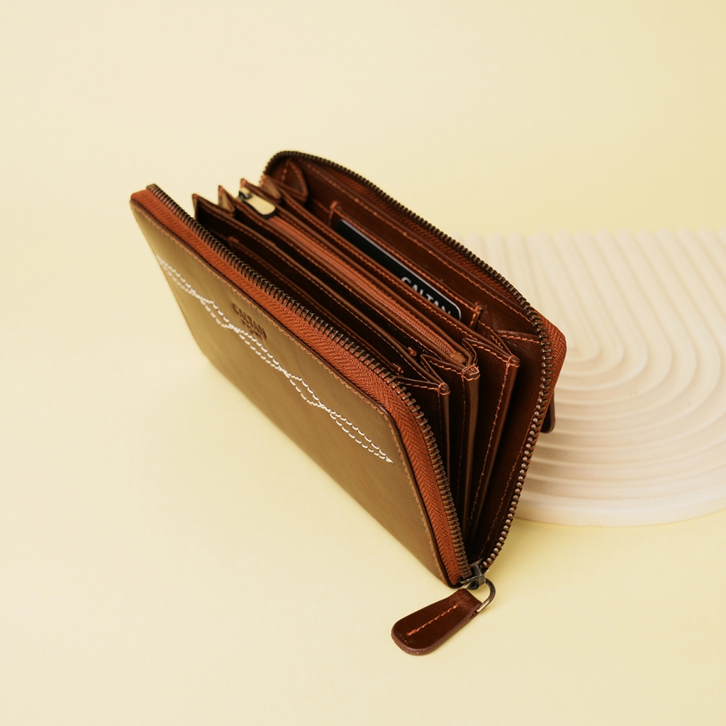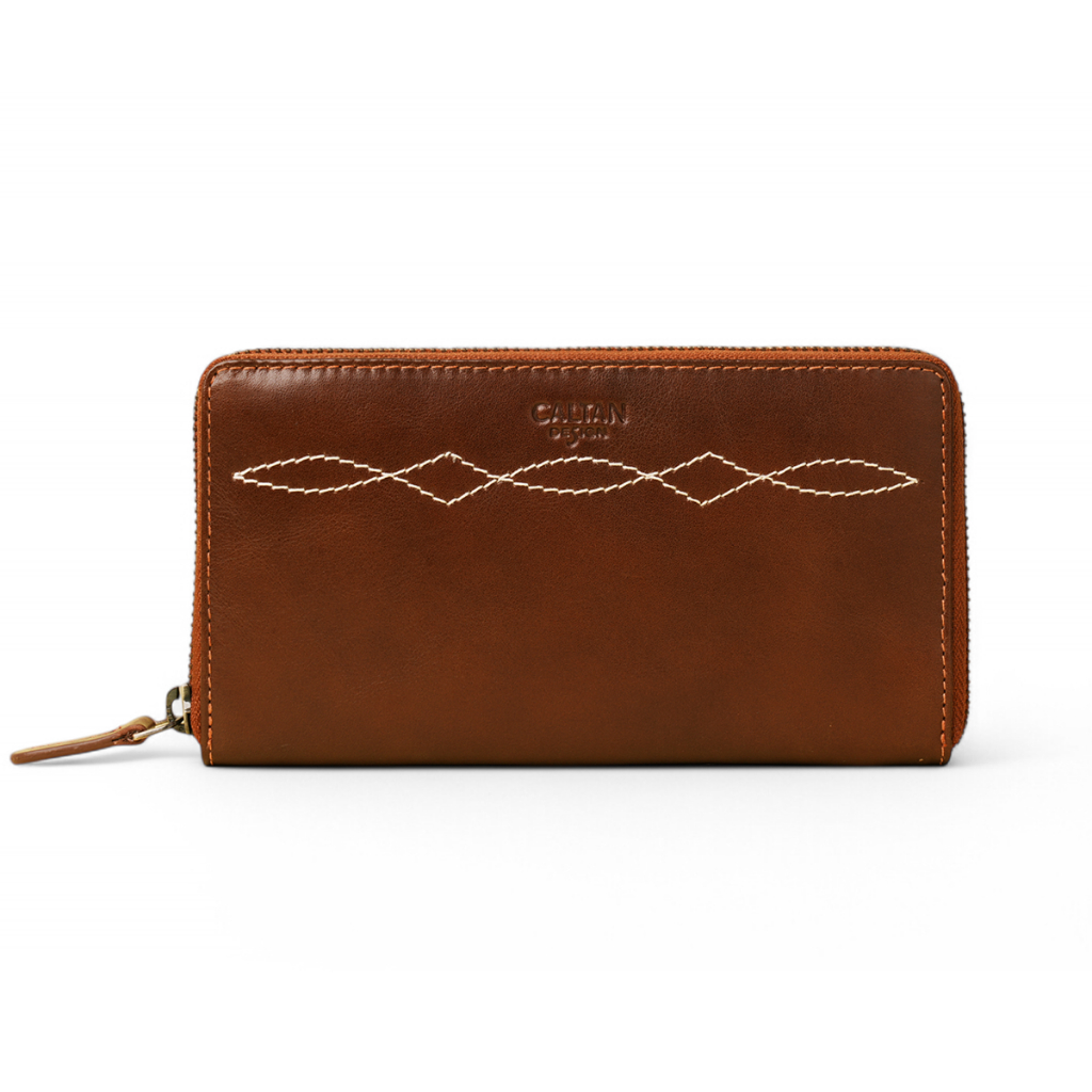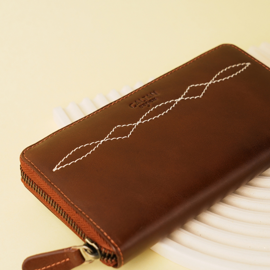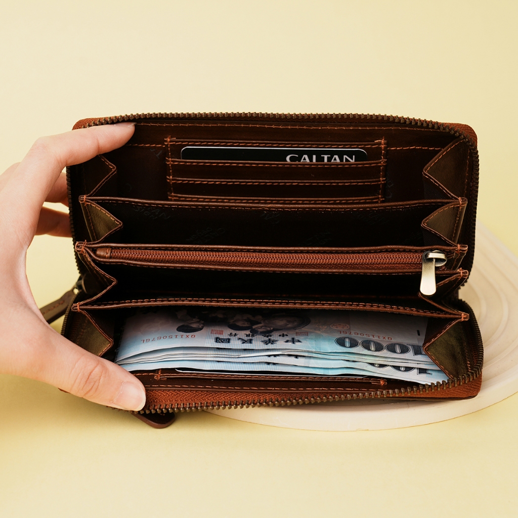 【CALTAN】牛皮/長夾|菱紋縫線真皮多功能長夾-075142_兩色百搭咖啡|森林綠色Long WalletsCALTAN DESIGN 頭層牛皮皮件館