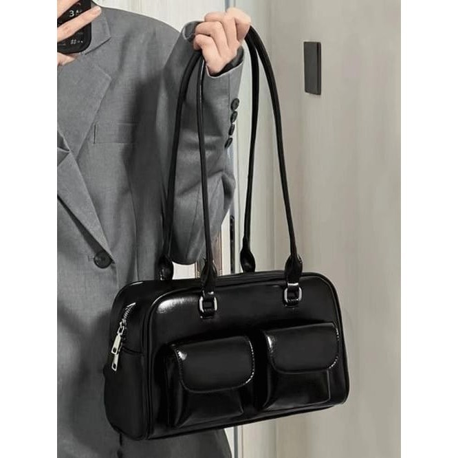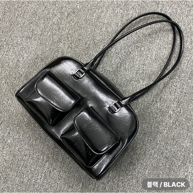 Codibook|韓國 VANHECER 方形雙口袋皮革手提肩背包[預購]肩背包 托特包 女裝黑色,FREECodibook 韓國女裝購物平台
