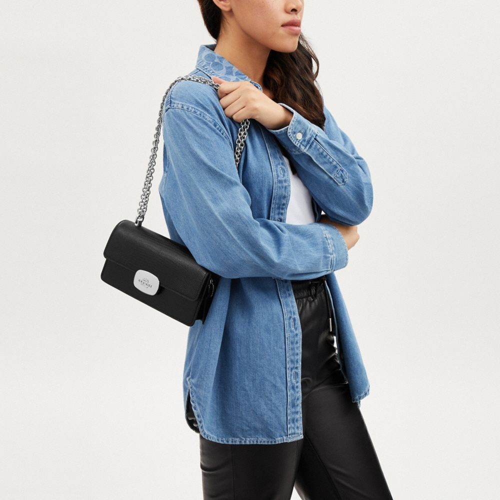 【COACH】ELIZA翻蓋斜背手袋-SV/黑色(CR106)|官方直營SV/黑色COACH官方旗艦店
