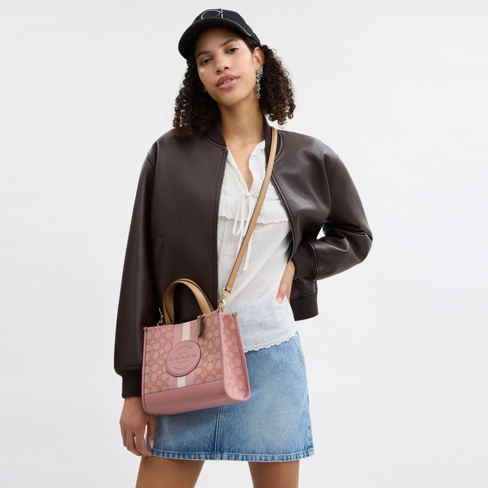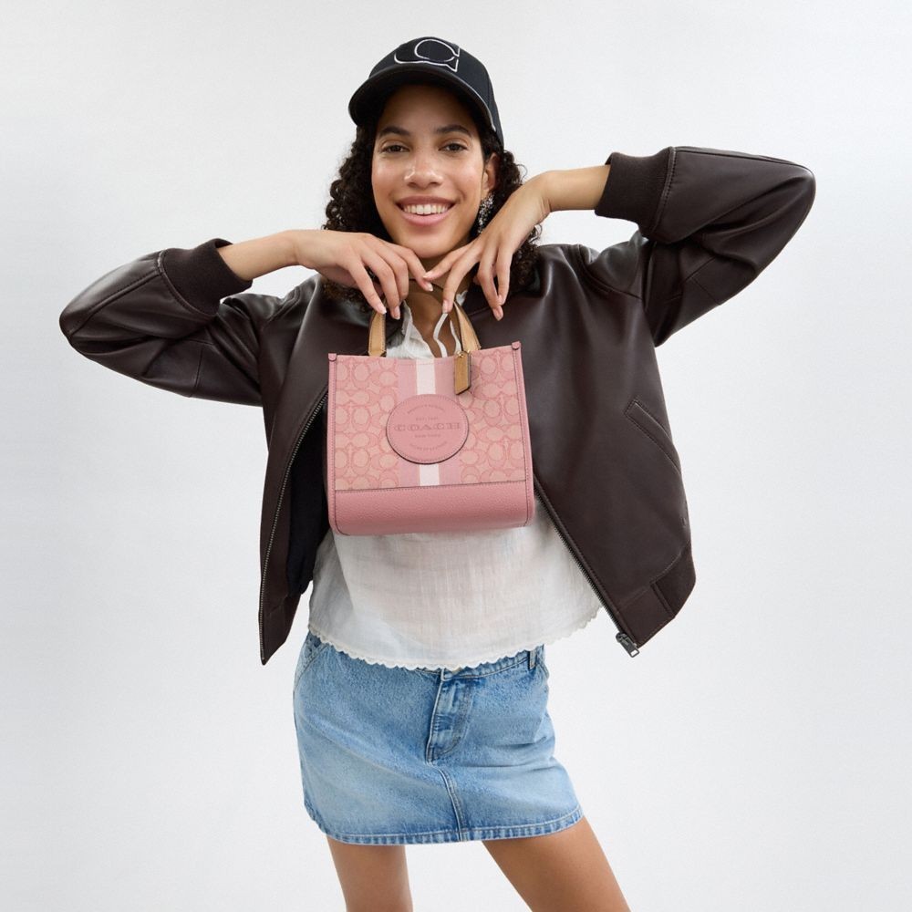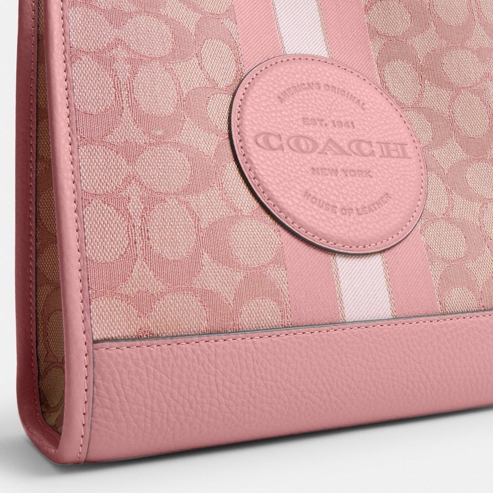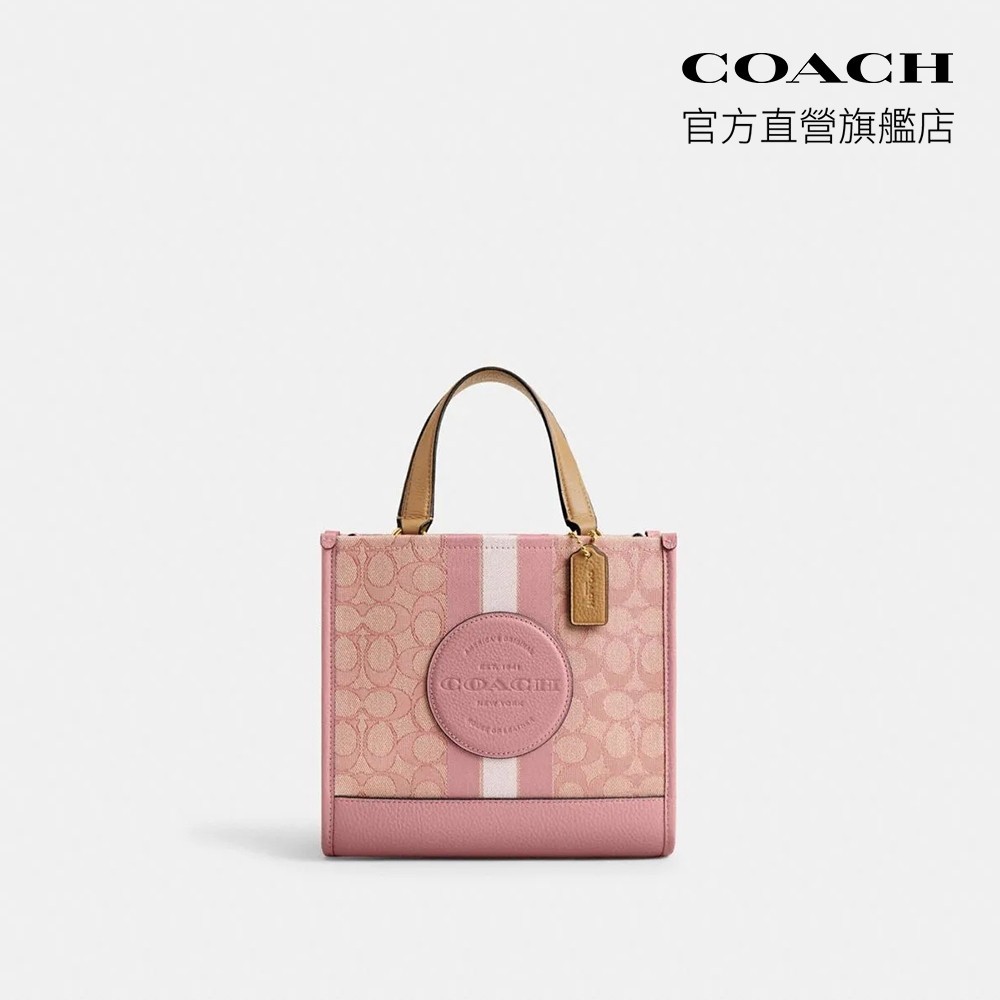 【COACH】DEMPSEY 經典條紋和COACH貼飾22號托特手袋-IM/正粉色/拿鐵色(CQ878)|官方直營IM/正粉色/拿鐵色COACH官方旗艦店