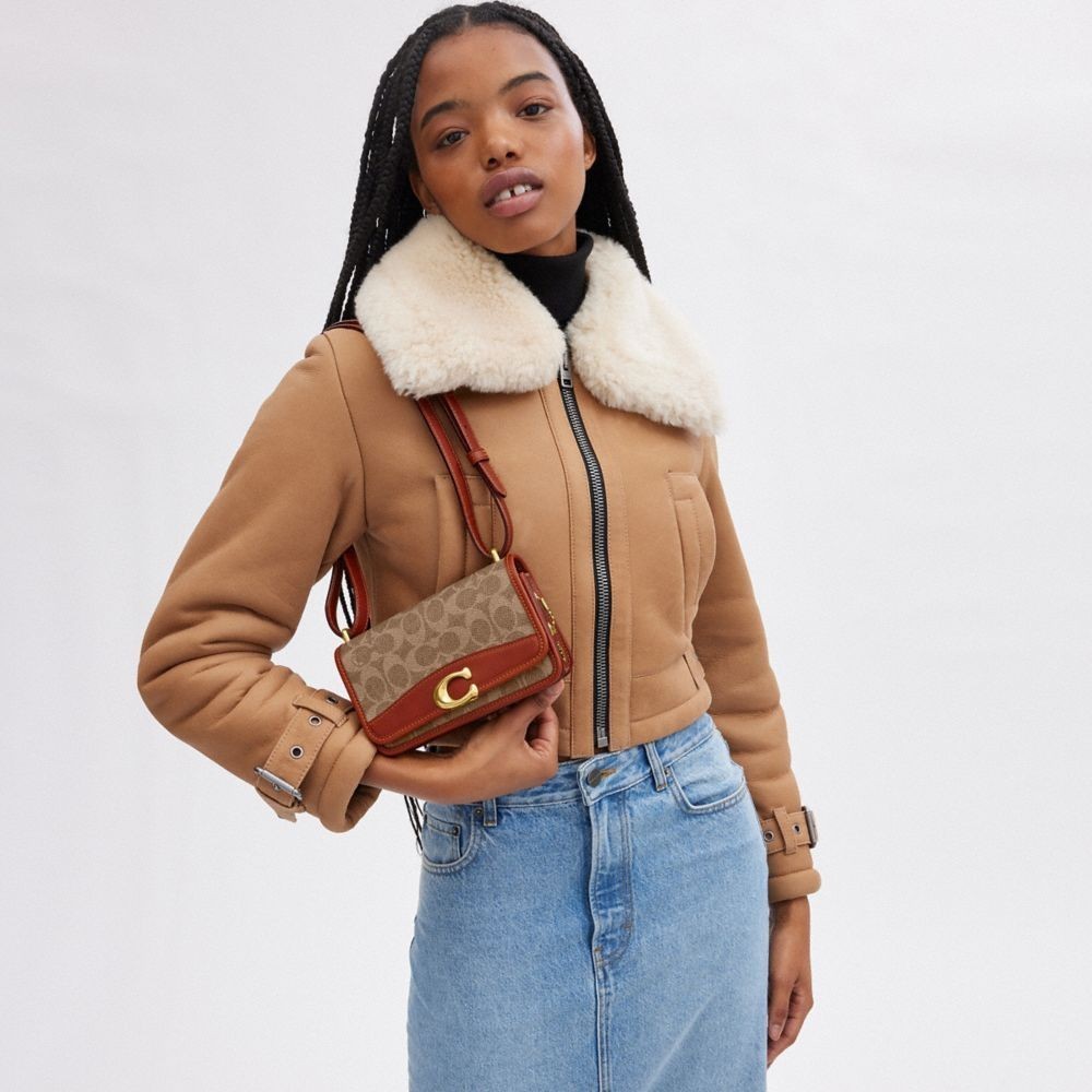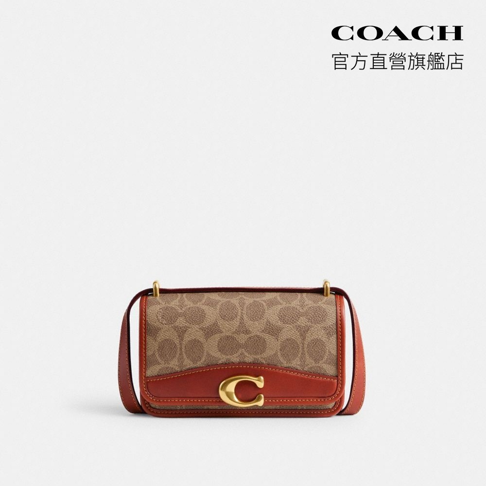 【COACH】【線上限定】BANDIT 經典 SIGNATURE 帆布斜背手袋|官方直營B4/棕黃色 鏽紅色COACH官方旗艦店
