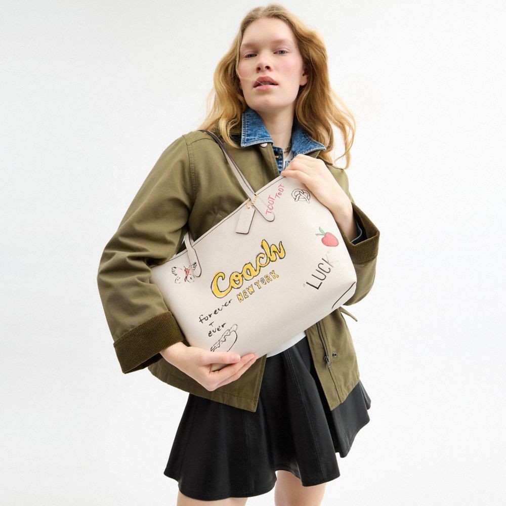 【COACH】CITY素描印花托特手袋-IM/粉筆白色 混合色(CAK18)|官方直營IM/粉筆白色 混合色COACH官方旗艦店