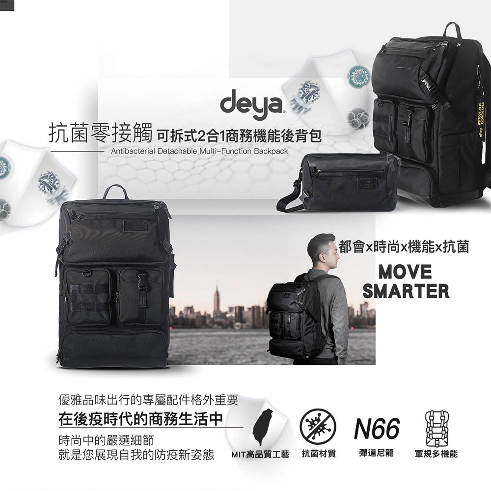 deya︱cross 二合一可拆式抗菌後背包 黑色︱彈道尼龍 軍規布料 行李插袋 筆電包 側背包deya︱cross 二合一可拆式抗菌後背包 黑色︱彈道尼龍 軍規布料 行李插袋 筆電包 側背包deya官方旗艦店