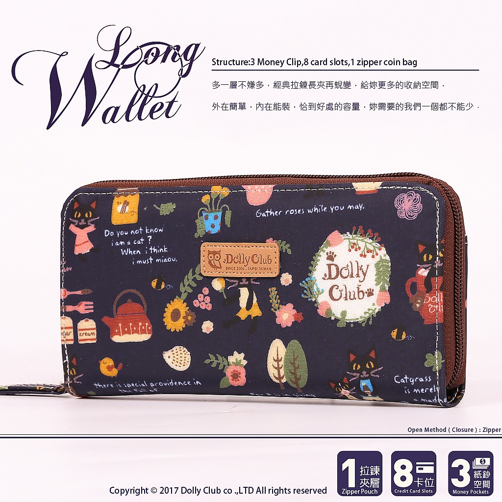 【Dolly Club】繽紛-多卡夾長夾女生-皮夾-長夾-大容量長夾-女用長夾-女長夾-長皮夾-零錢包-手拿包-貓咪喵659|660|919|920|298|299|300|658Long WalletsDolly Club 防水布包專門店