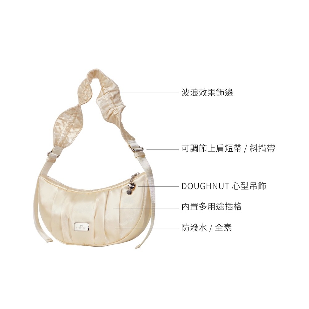 DOUGHNUT官方賣場 Eclair 小可頌包 半月包 手提包 斜背包 防潑水 大容量 蝴蝶結 GT 情人節禮物 七夕香檳|粉紅玫瑰|月光石DOUGHNUT | 台灣商城