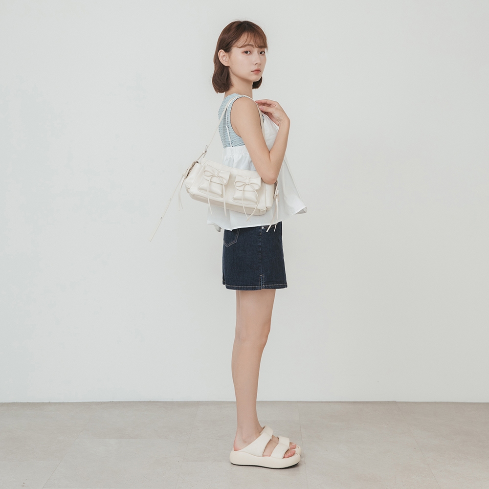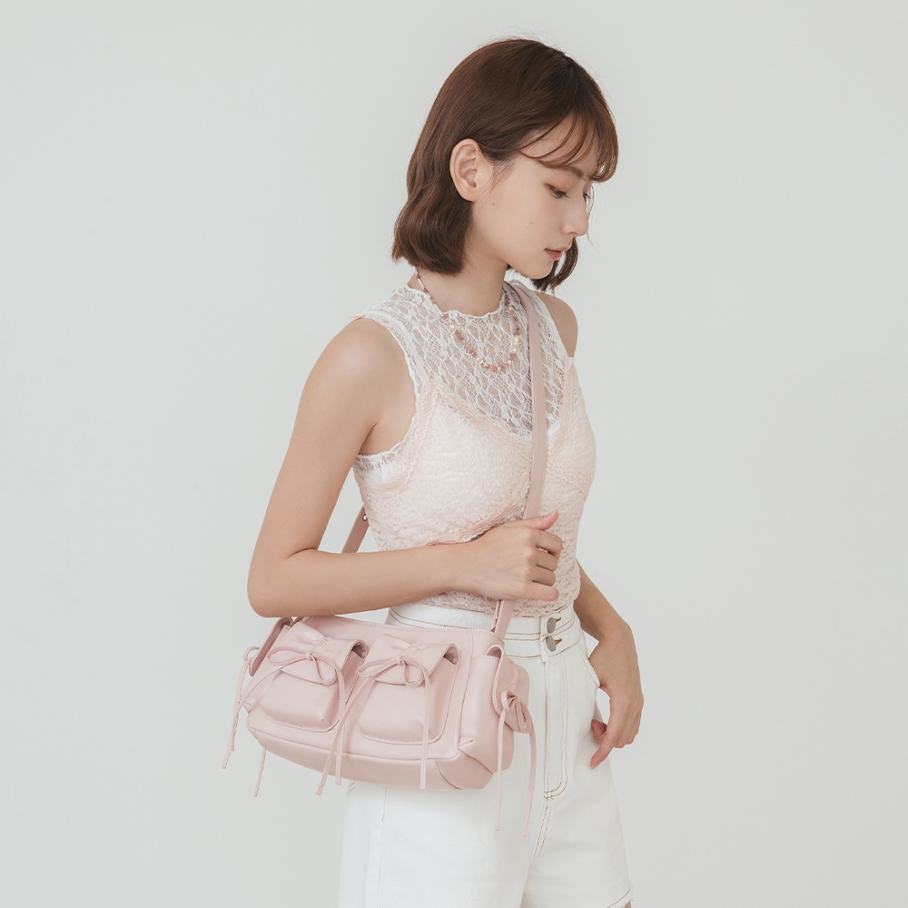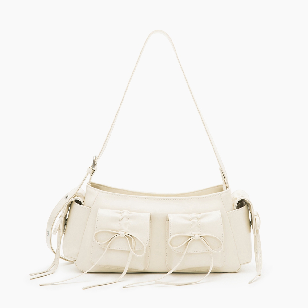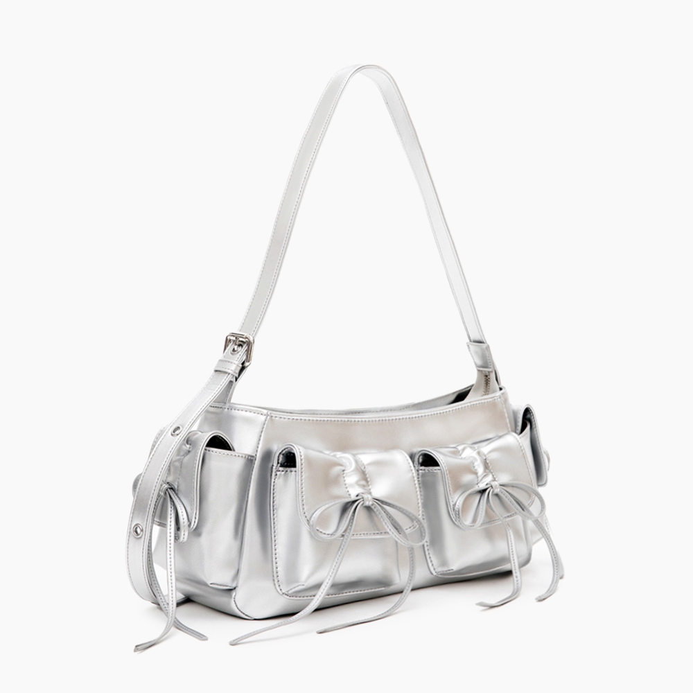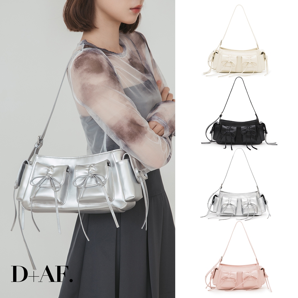 D+AF 包包 包 肩背包 [Nabi蝴蝶結多口袋二用側背包] 4色 單肩包 女包銀|米白|粉|黑D+AF|官方旗艦店