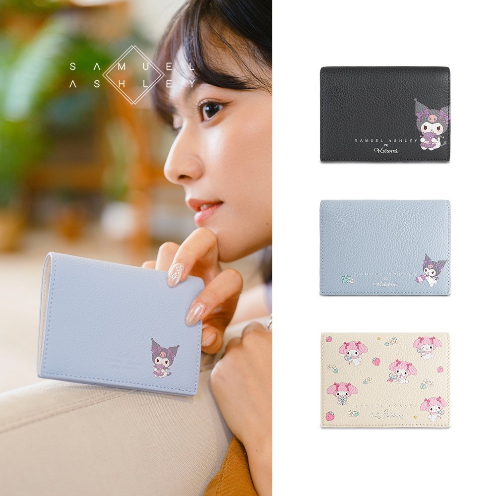 Samuel Ashleyx三麗鷗 限定款 Kuromi酷洛米&美樂蒂 女生皮夾錢包短夾推薦 9卡拉鍊-SAKM-007Kuromi深灰色|Kuromi冰藍色|MyMelody米白色Card HoldersCrocodile 鱷魚皮件官方旗艦店