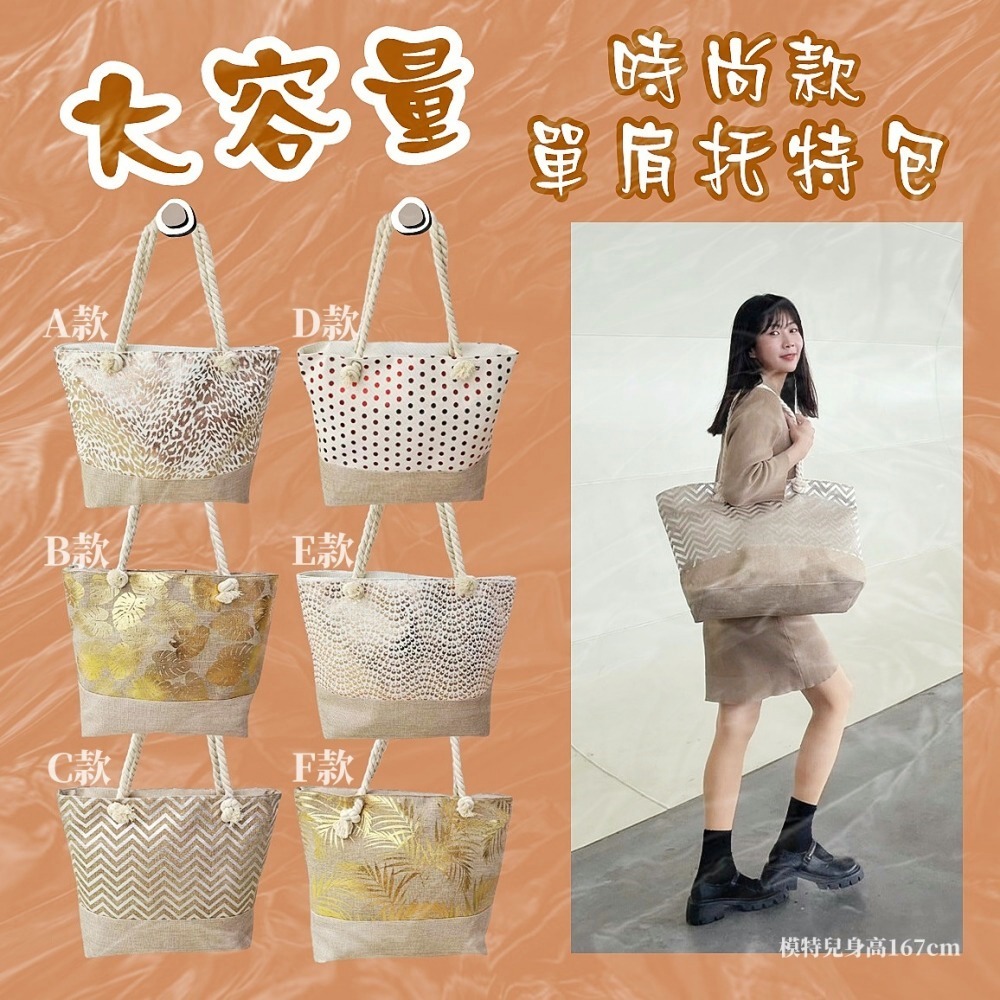 【e點紅】大容量時尚拉鍊單肩托特包(6款)-時尚大容量包/托特包/海灘包/媽媽包.等搭贈(隨機一款)|A款|B款|C款|D款|E款|F款e點紅