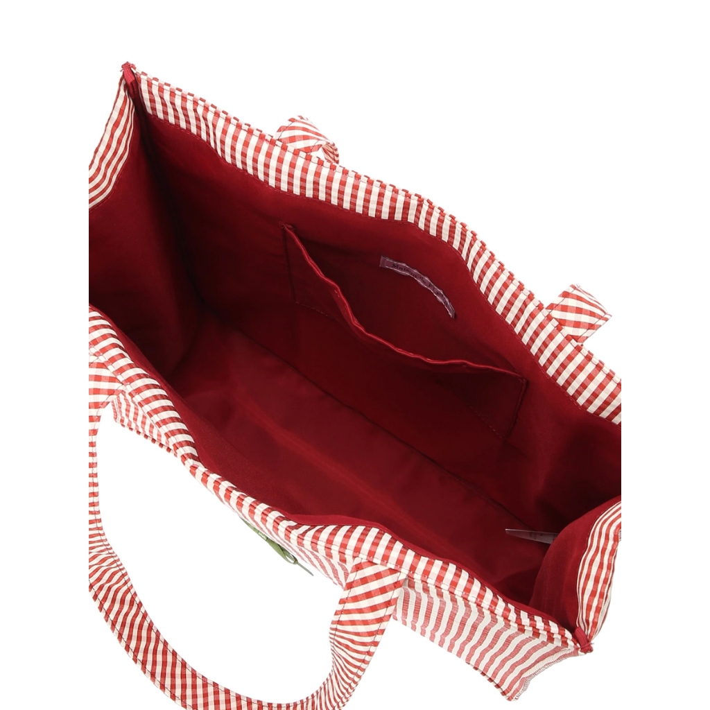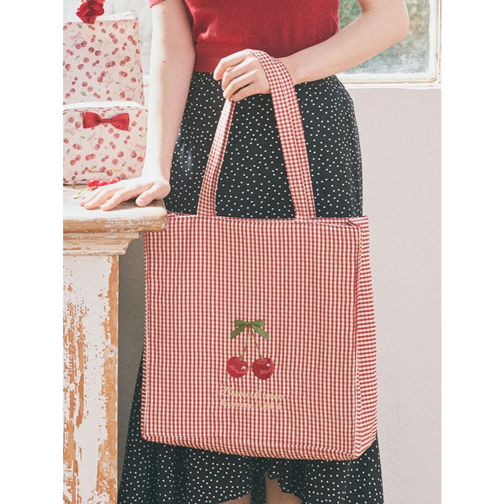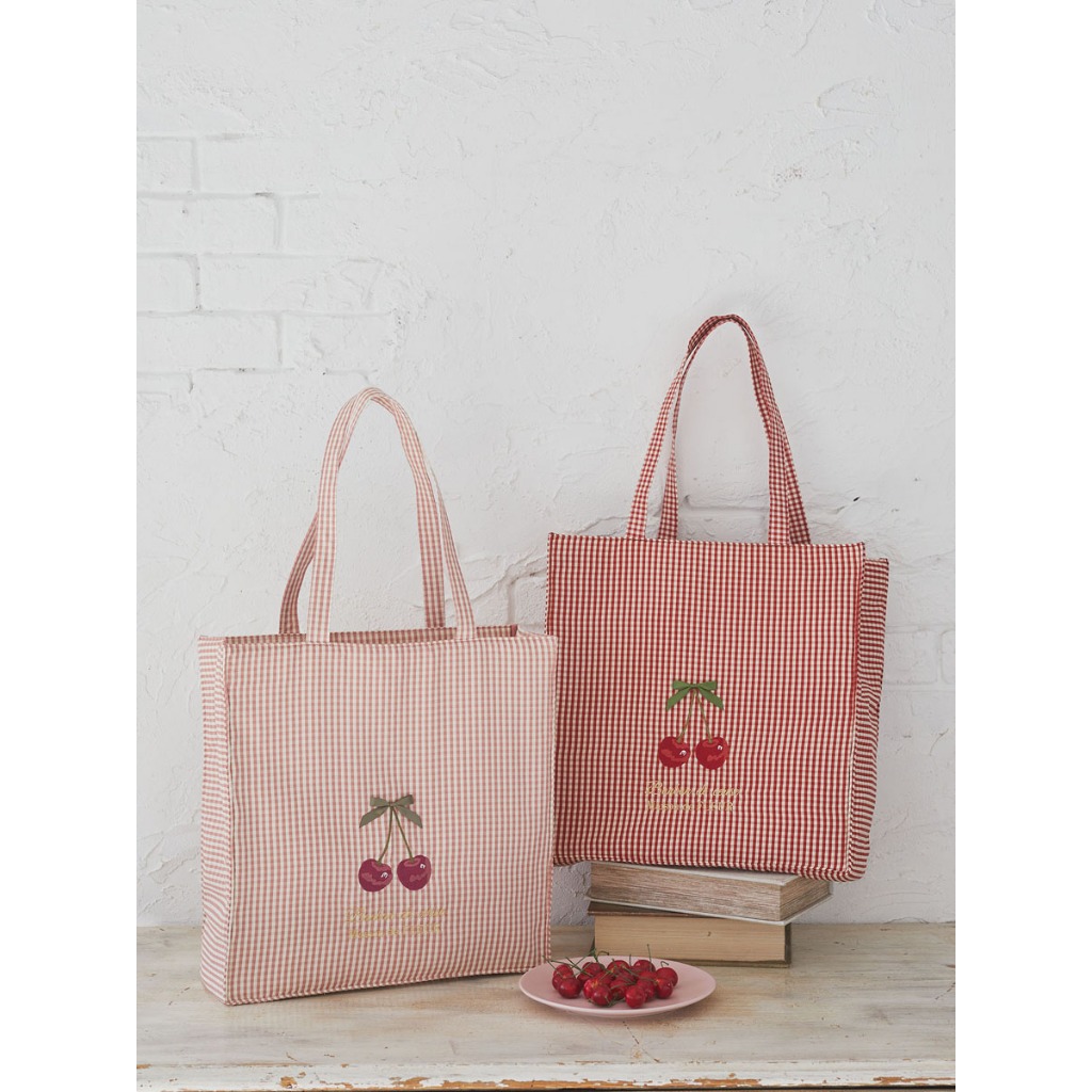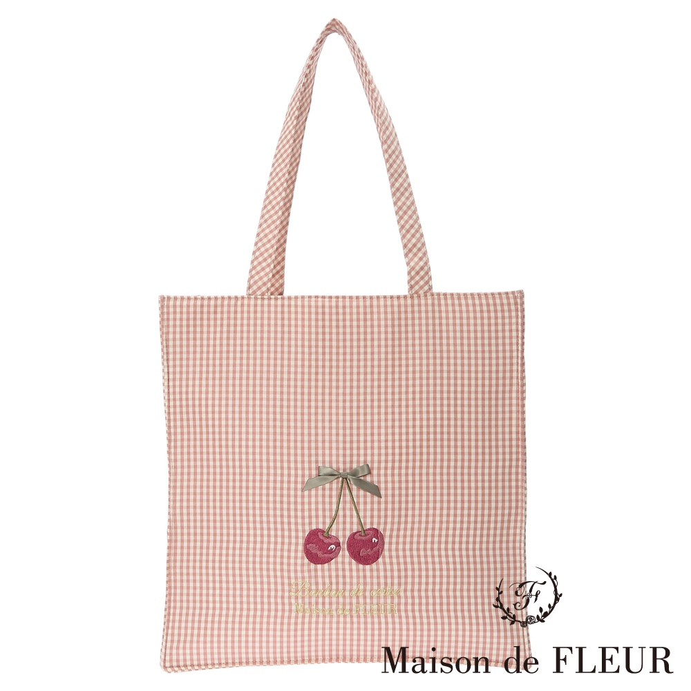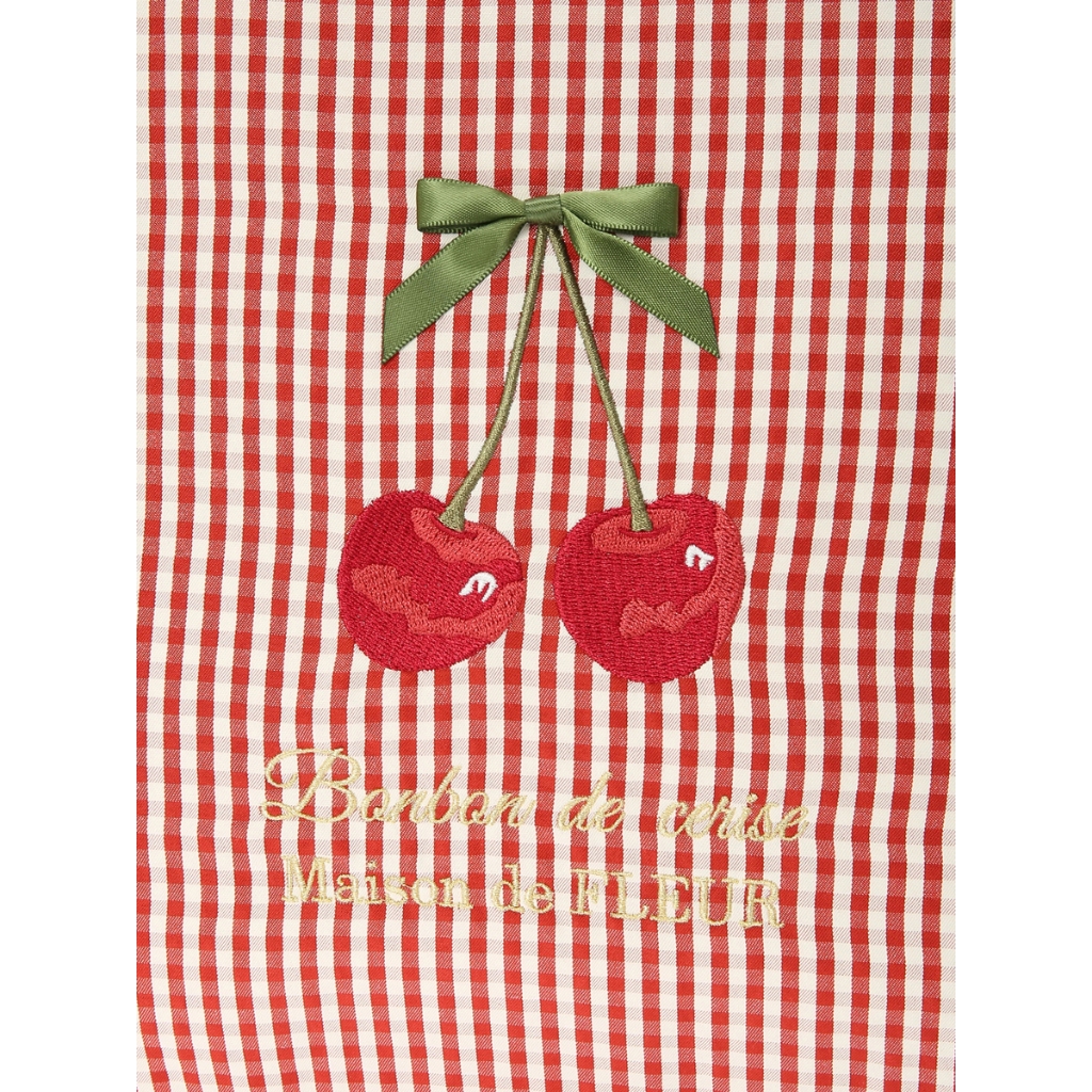 Maison de FLEUR 甜美櫻桃刺繡格紋方形帆布包(8A42F0J0900)深粉紅色F|紅色Fearth music&ecology Select Store