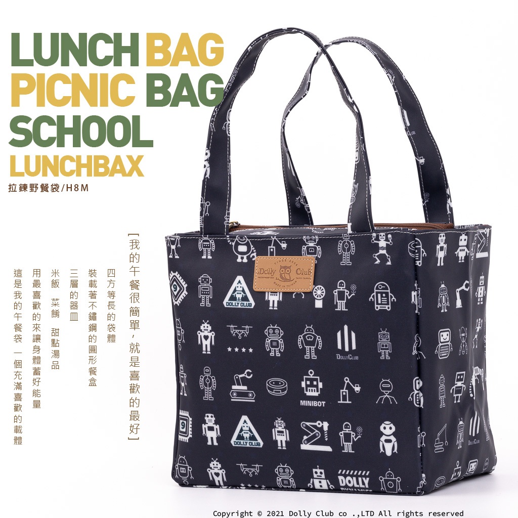 【Dolly Club】大野餐袋 多色可選 餐袋 國小餐袋 學生便攜午餐包 外食 野餐 手提袋 機器人迷彩 台灣製造1410|1140|1141|1144Dolly Club 防水布包專門店