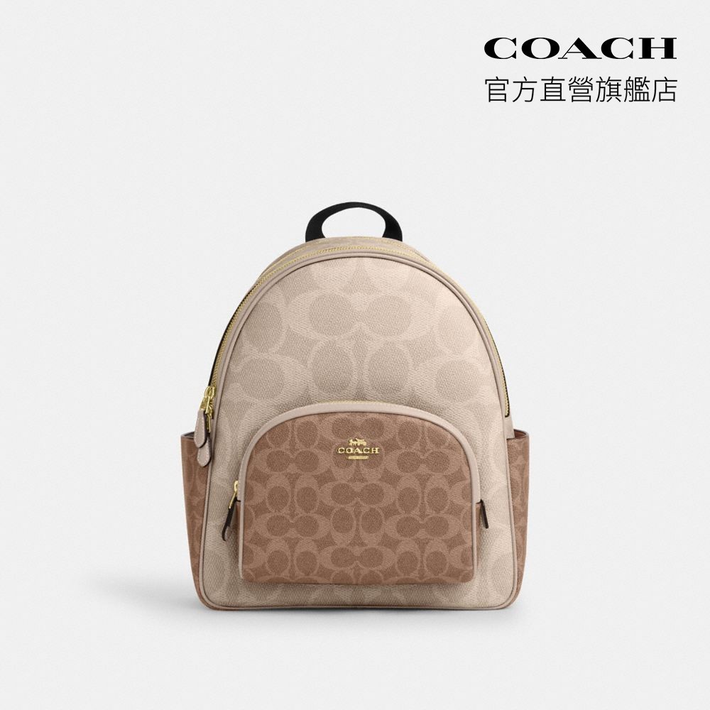 【COACH】COURT撞色經典Logo後背包-IM/沙黃色/棕黃色(CZ771)|官方直營IM/沙黃色/棕黃色COACH官方旗艦店